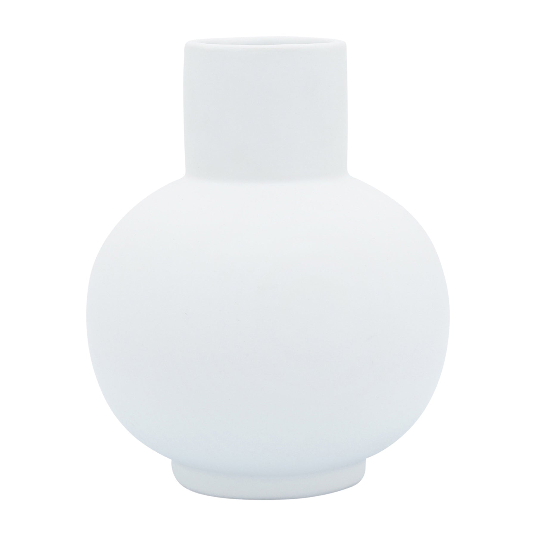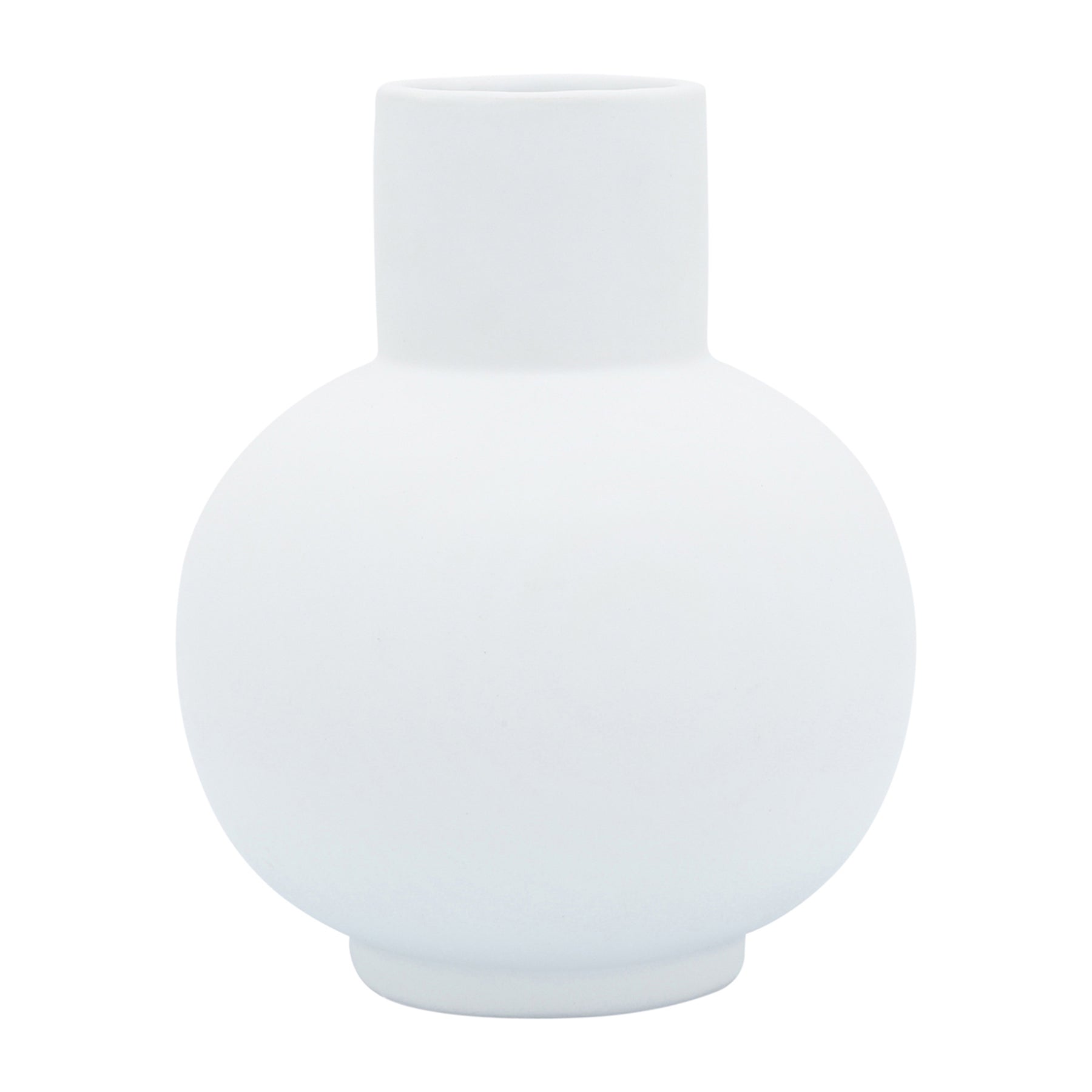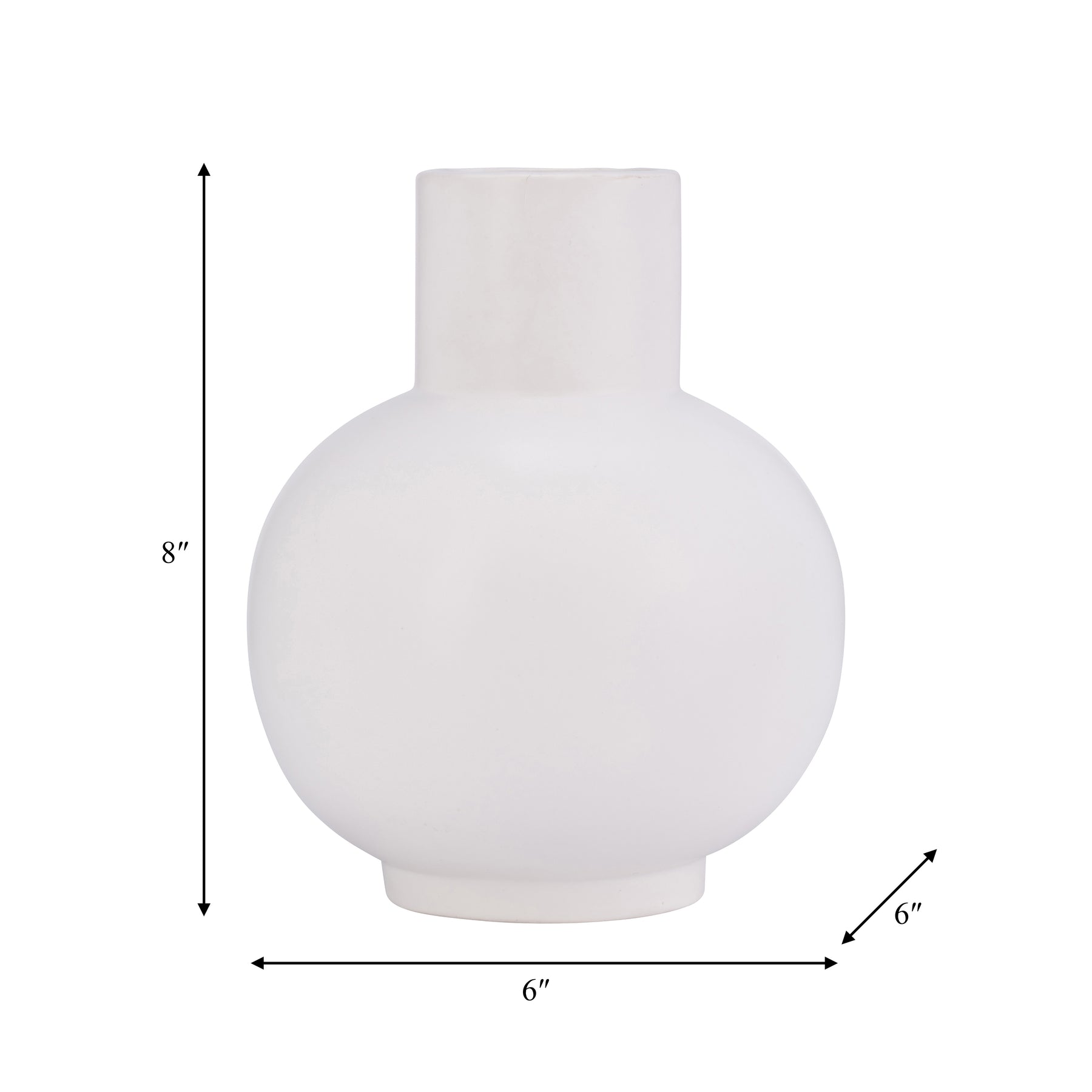 مزهرية منتفخة بارتفاع 8 بوصات، بيضاء اللون