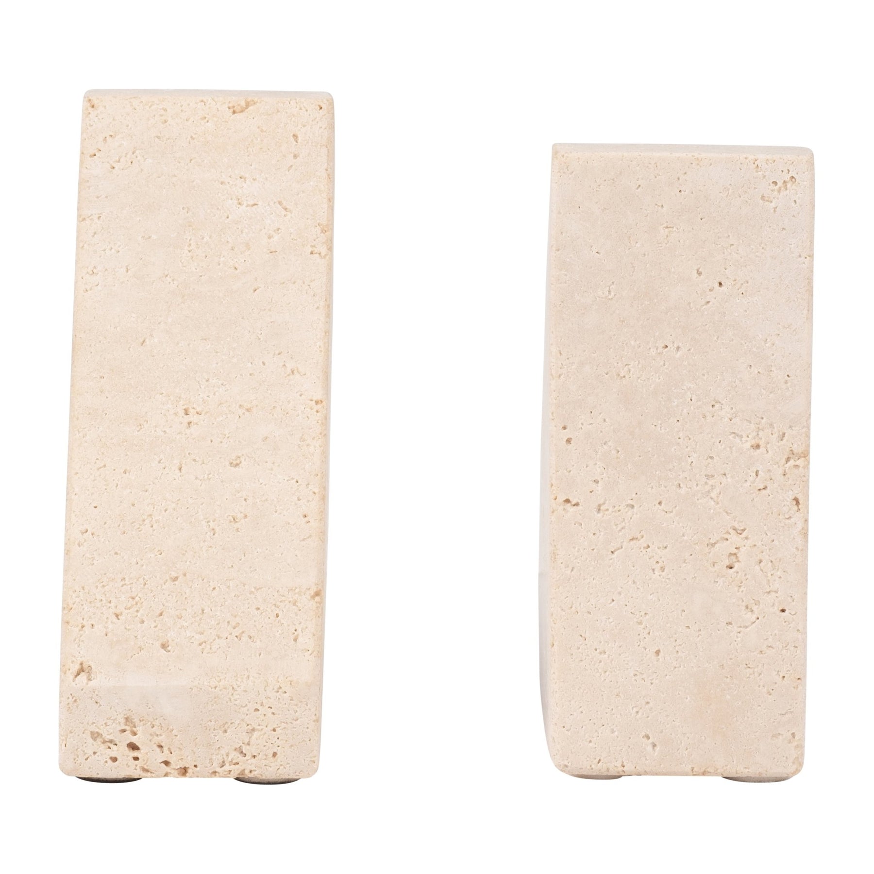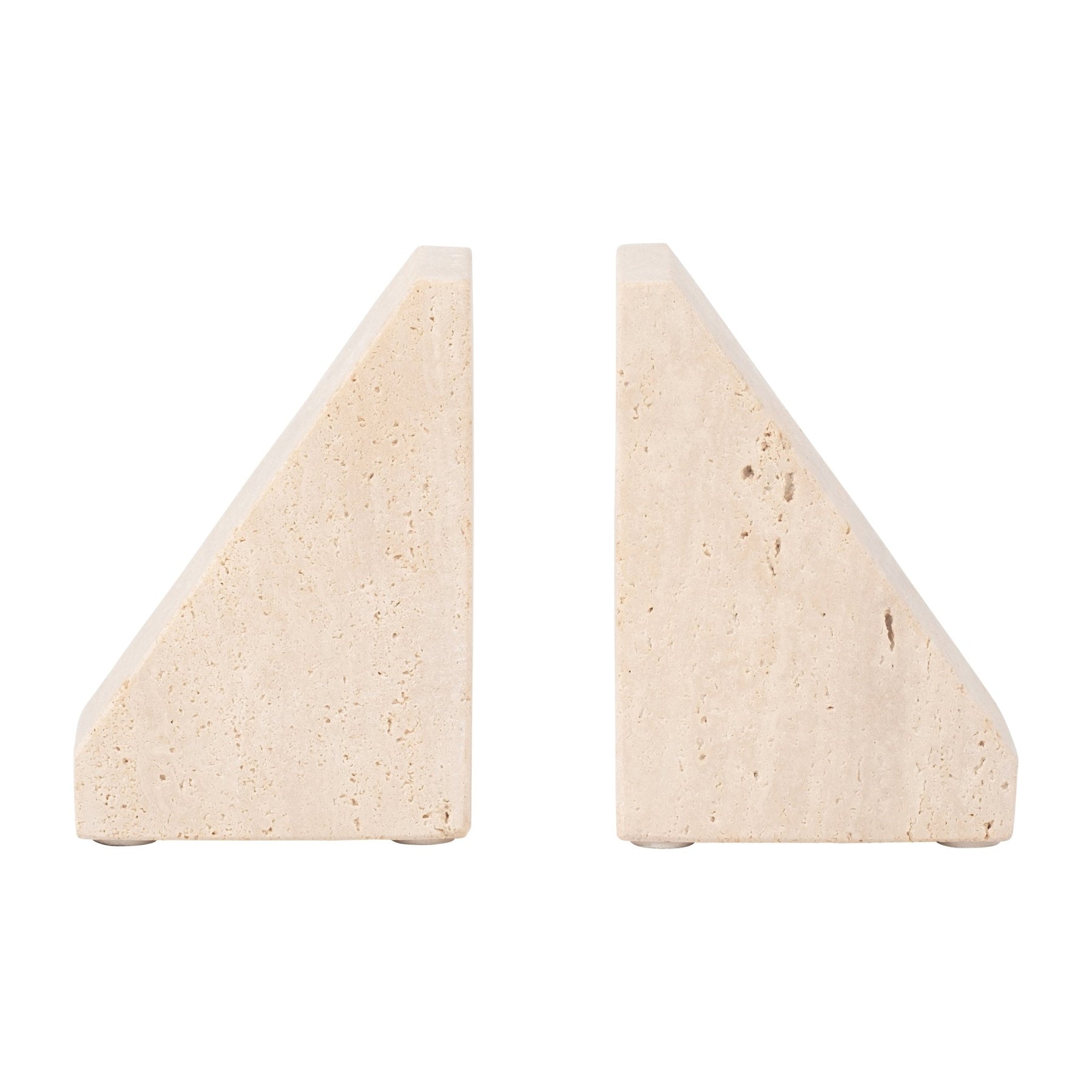 TRAVERTINE, S/2 5" TRIANGLE BOOKENDS, TAN - Al Rugaib Furniture