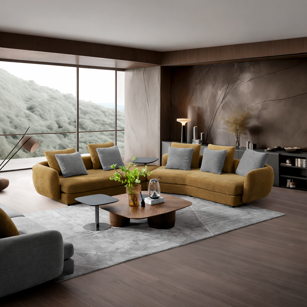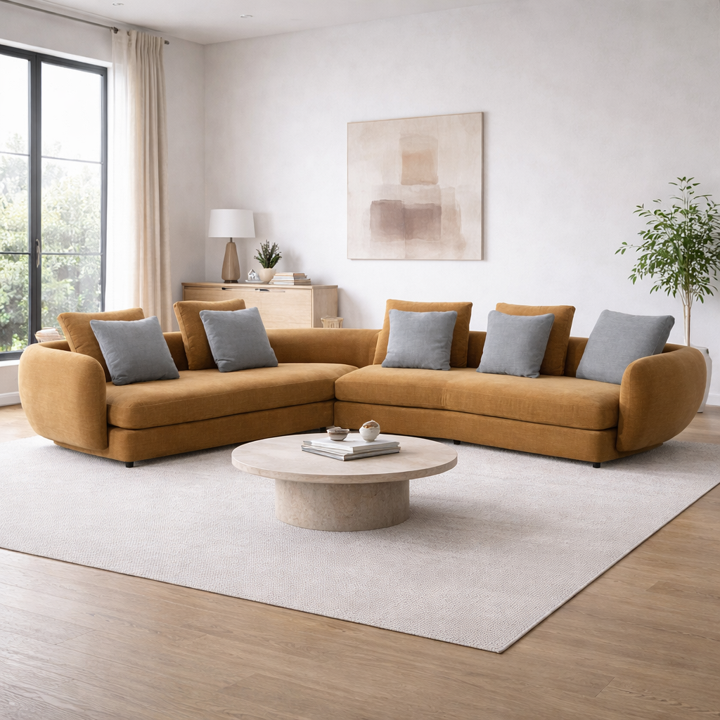كنبة مقسمة بتصميم أنيق باللون الأصفر الزنجبيل W313