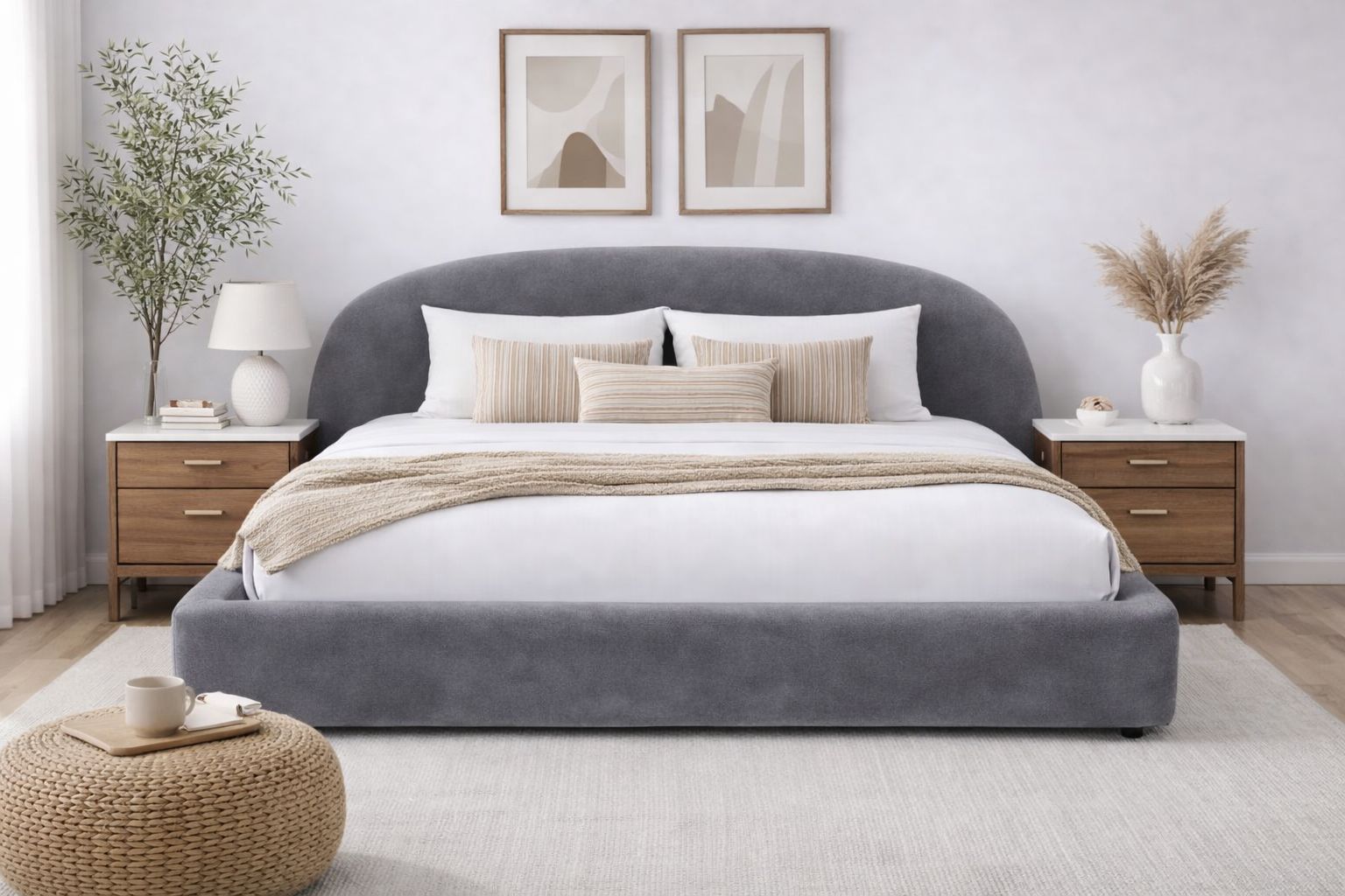 Boho Grey Velvet King bed