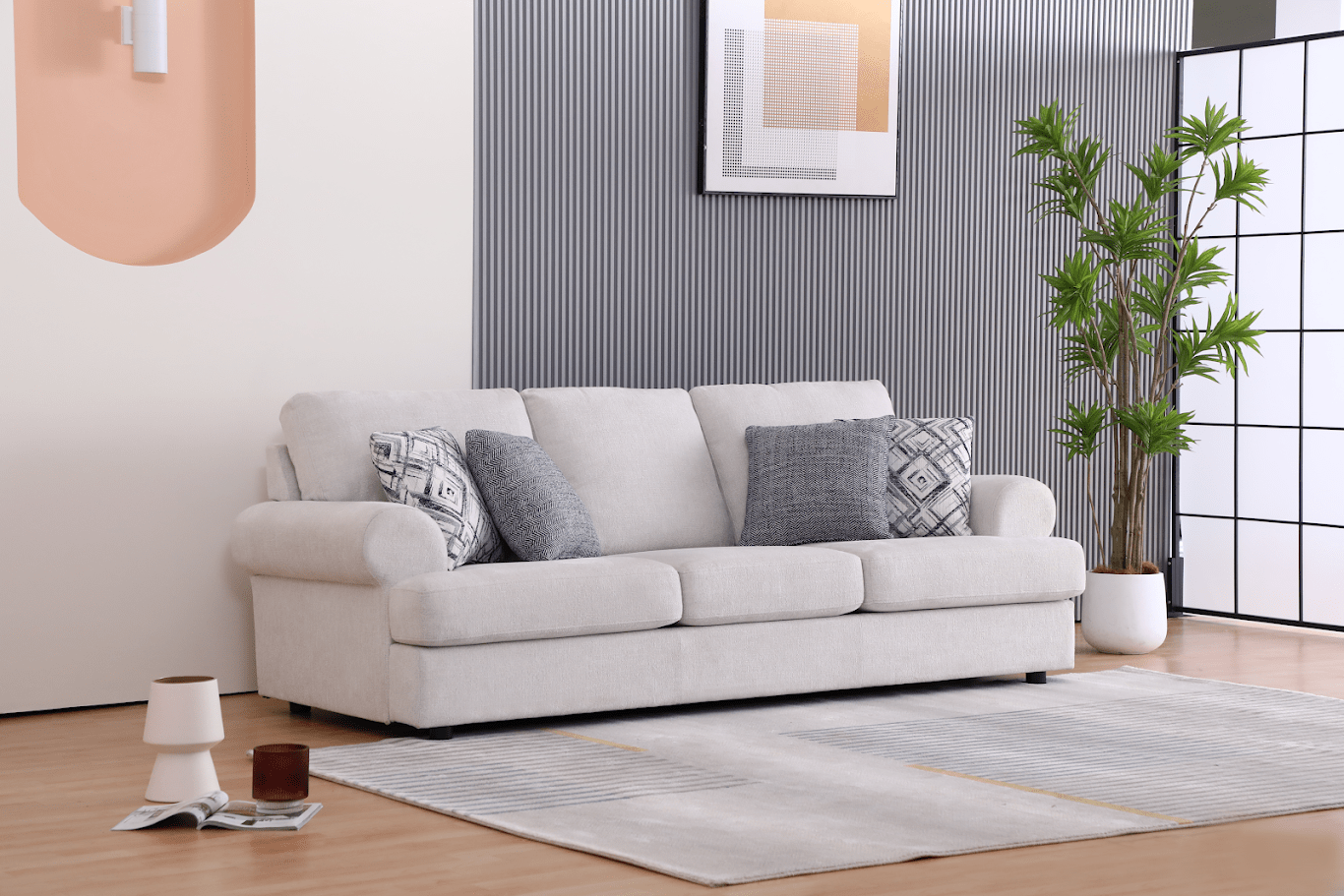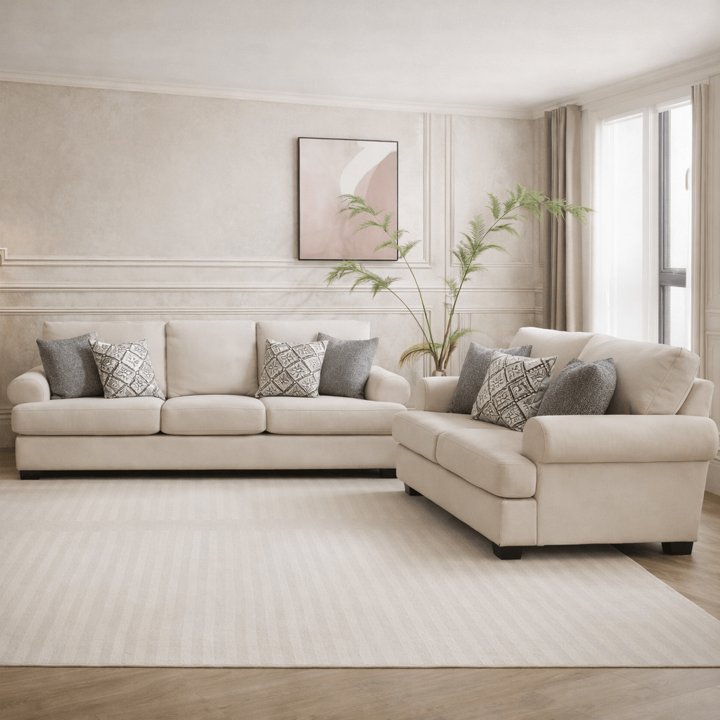 طقم غرفة معيشة أنيق بلون أبيض باهت