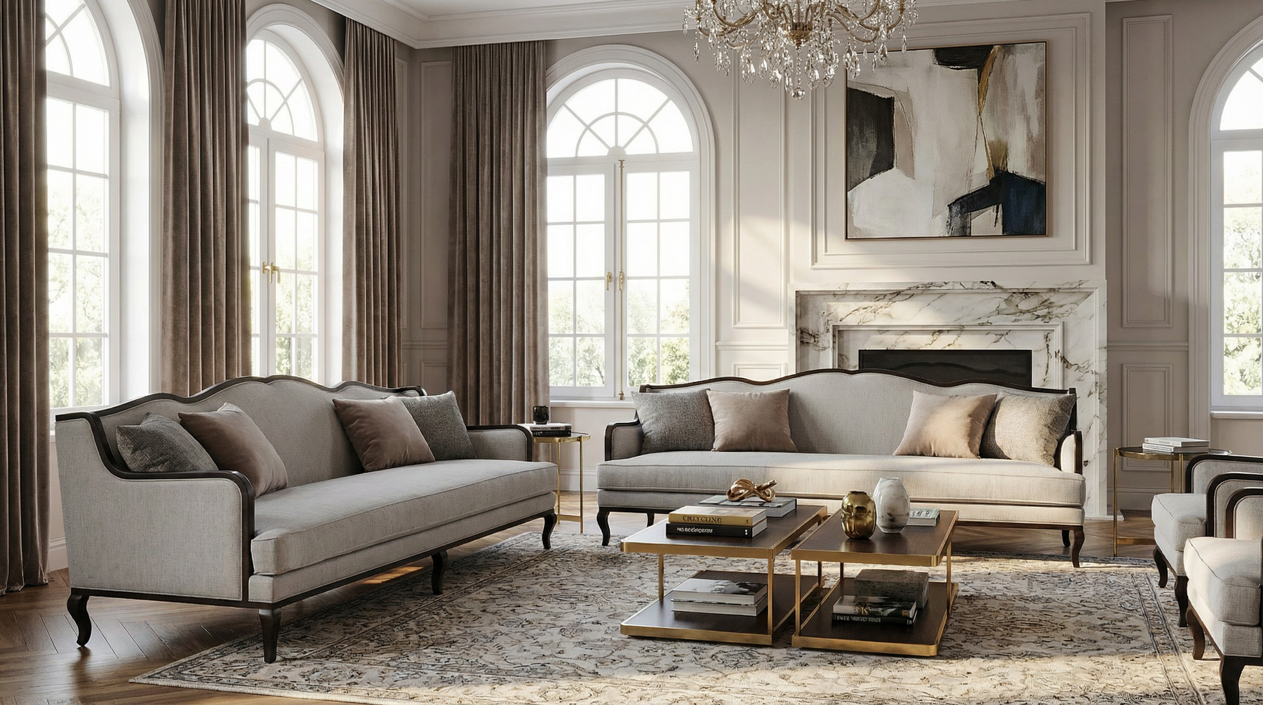 طقم كنبة شوق باللون الرمادي