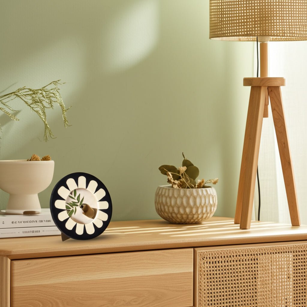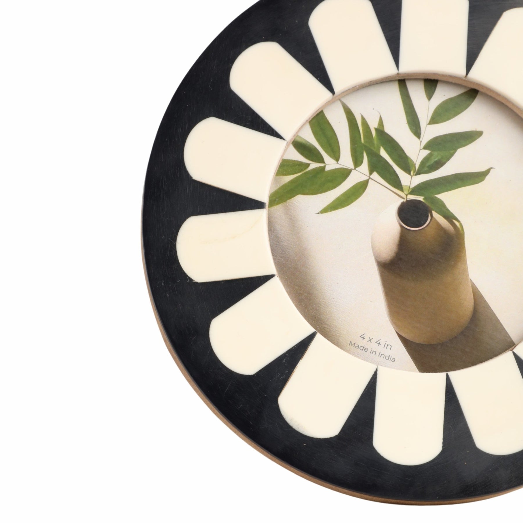 4x4 Round Petal Resin Photo Frame, Black/ivory - Al Rugaib Furniture