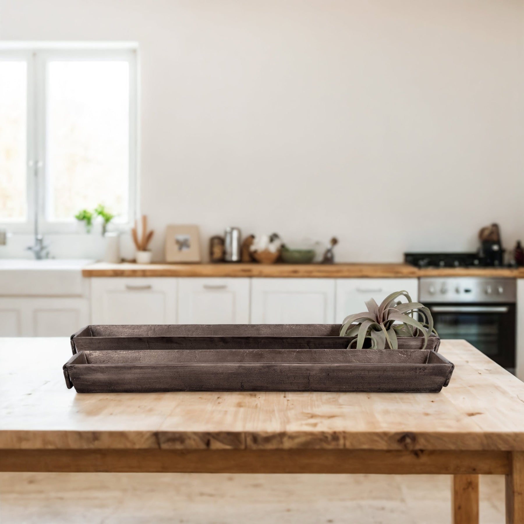 S/2 36/40" Jasper Silver Trays - Al Rugaib Furniture