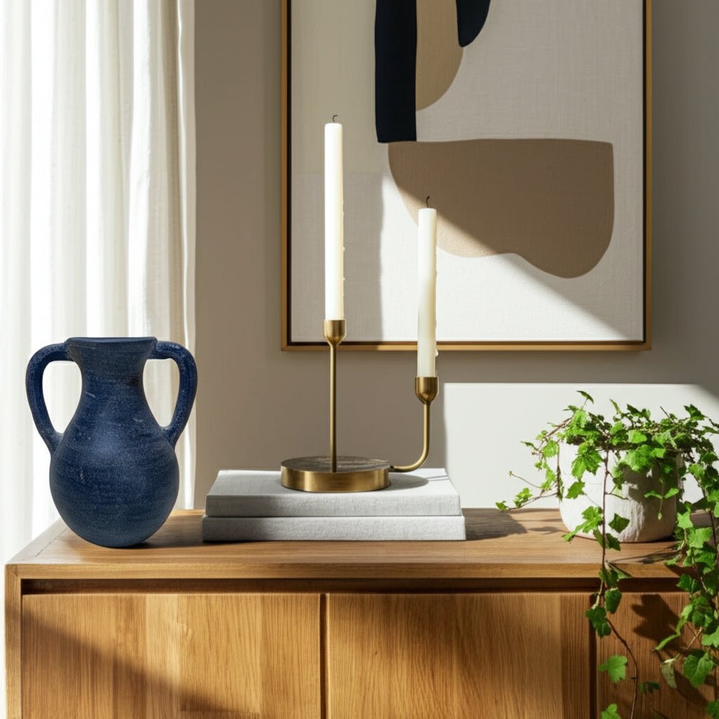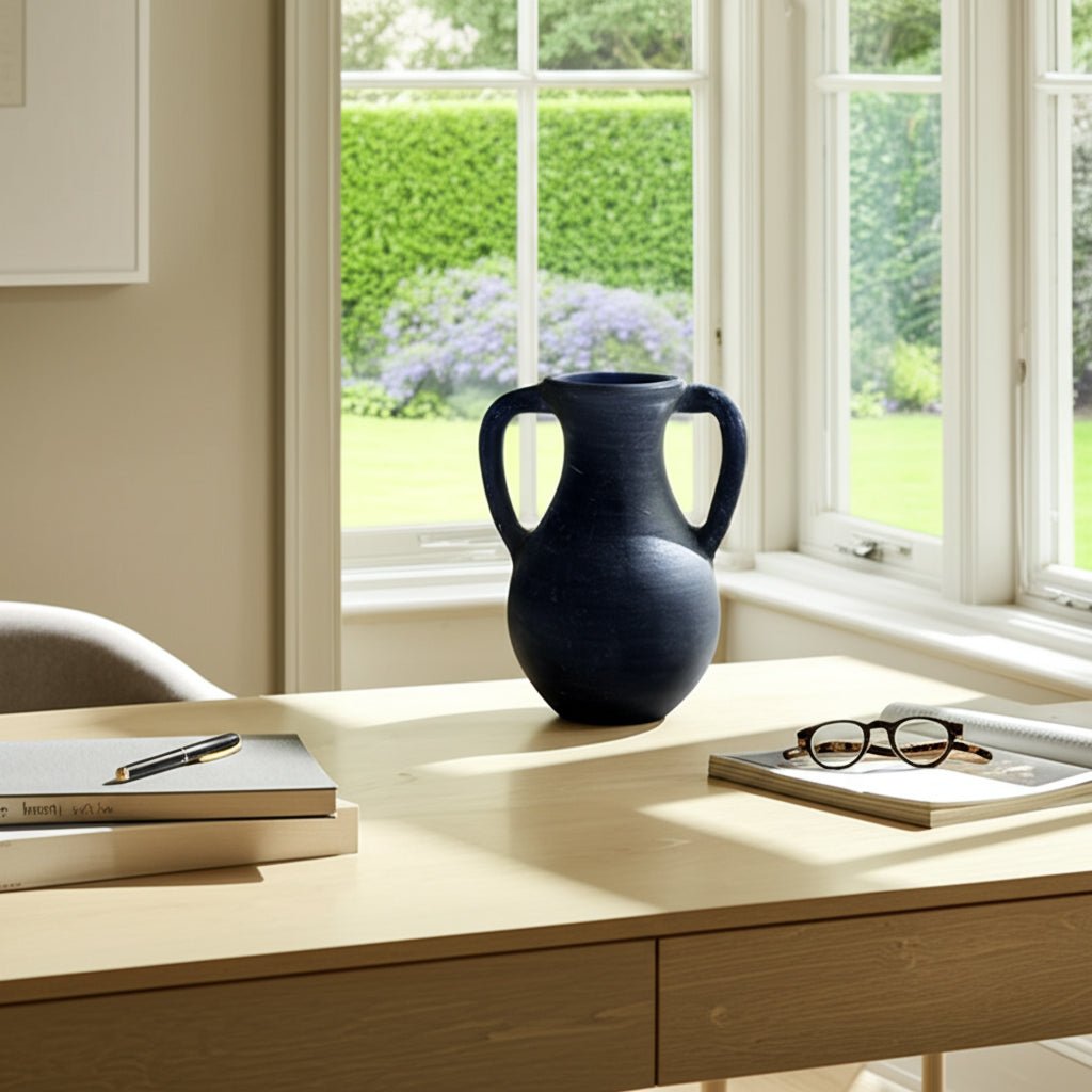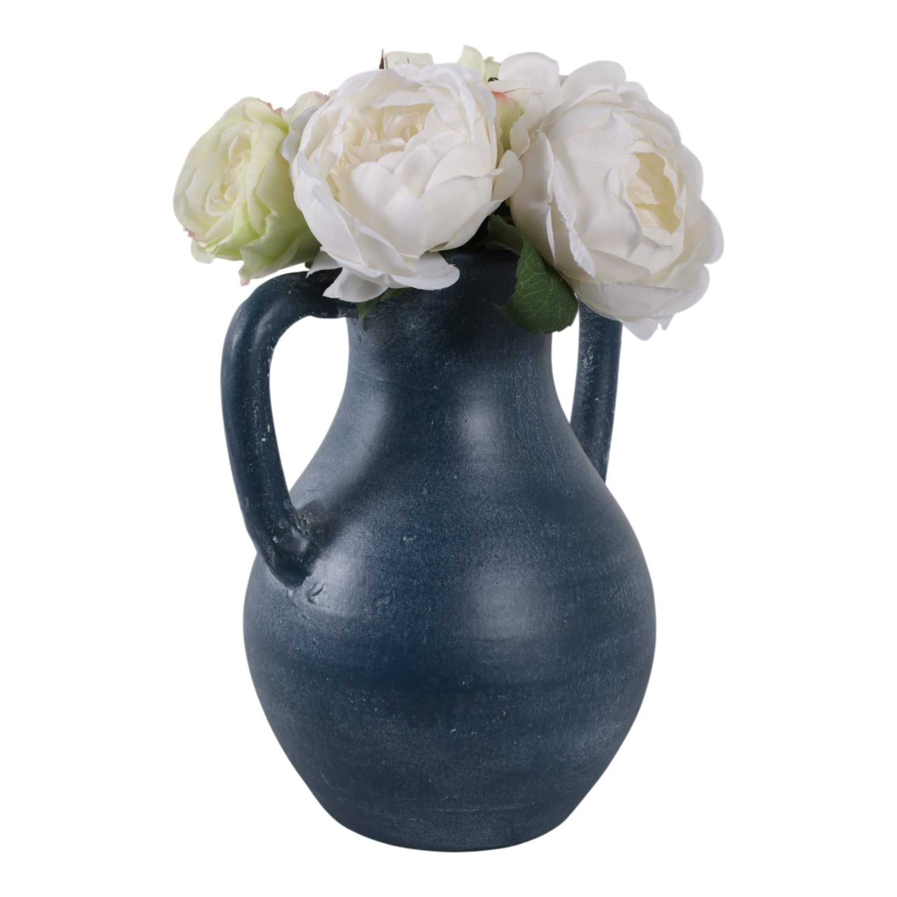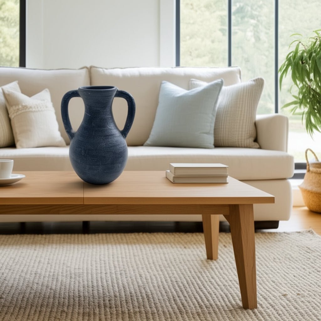 11x9" Terracotta Jug Vase With Handles, Blue - Al Rugaib Furniture