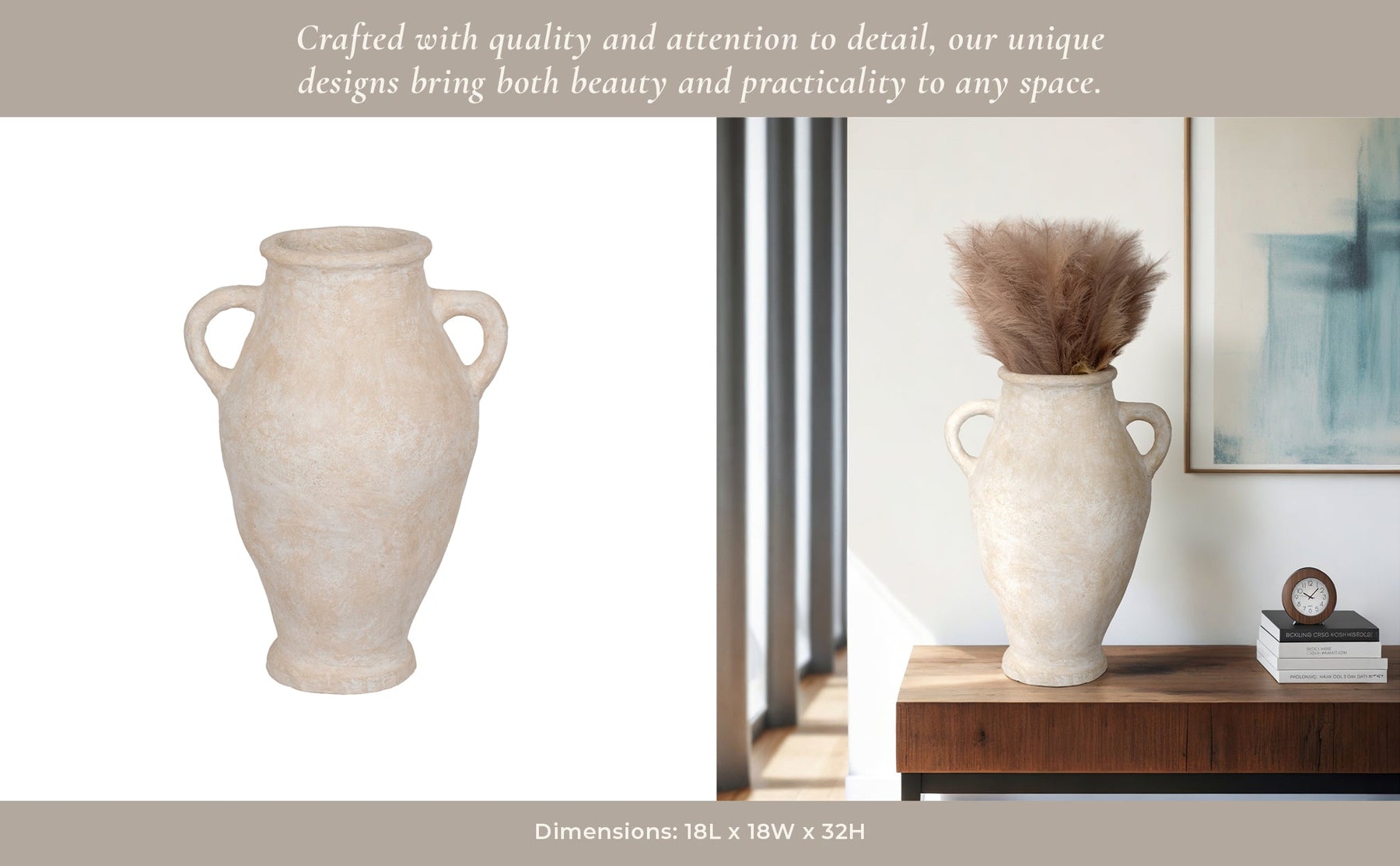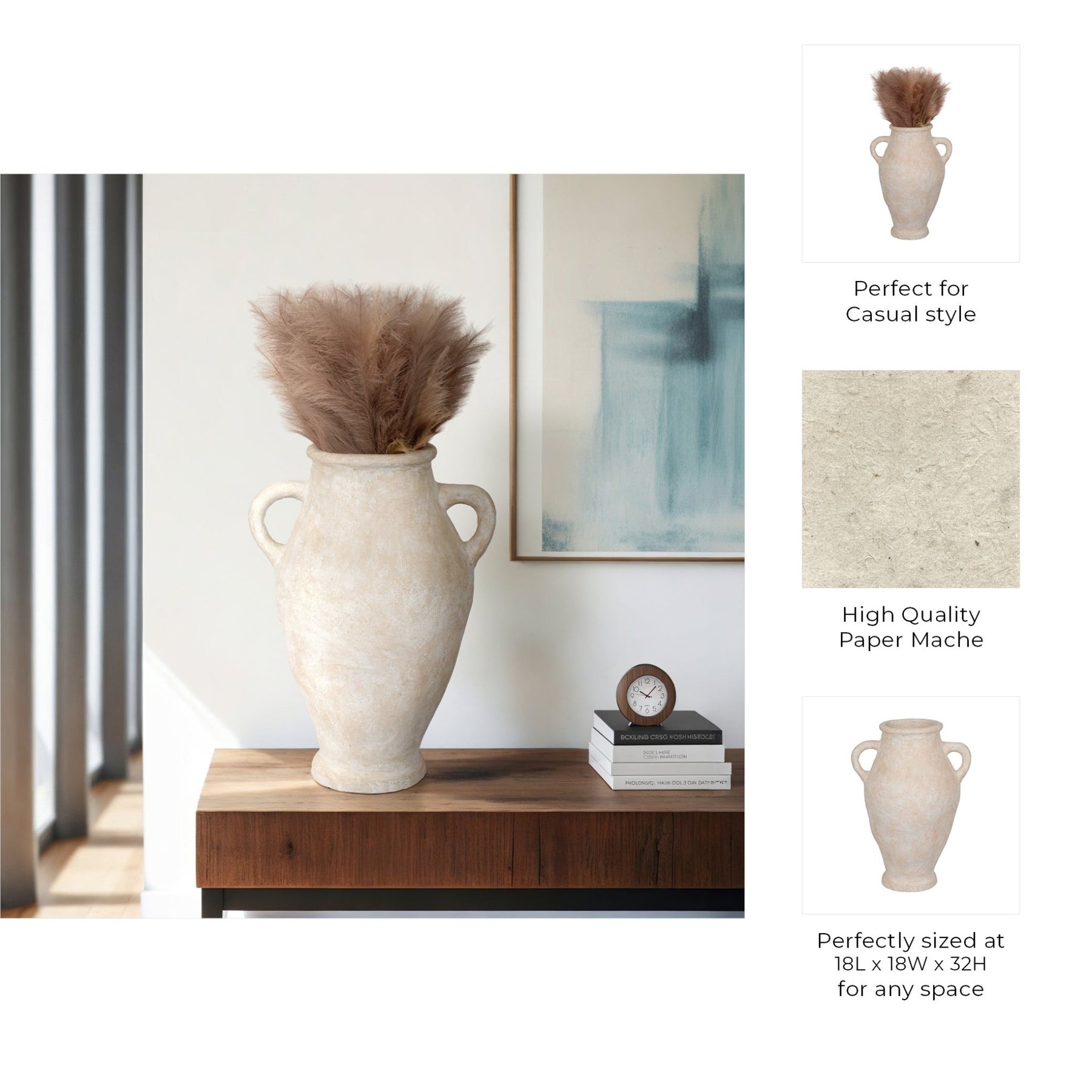 32" Paper Mache Jug With Handles, White - Al Rugaib Furniture
