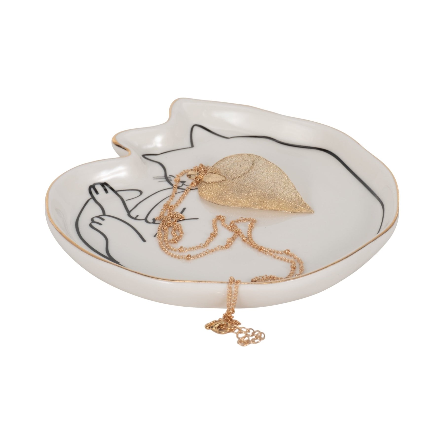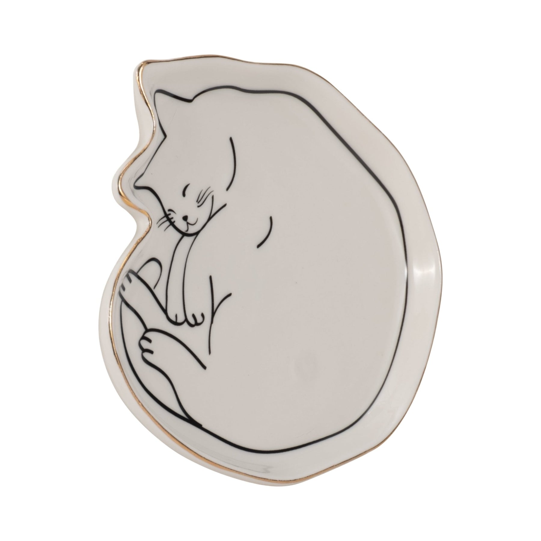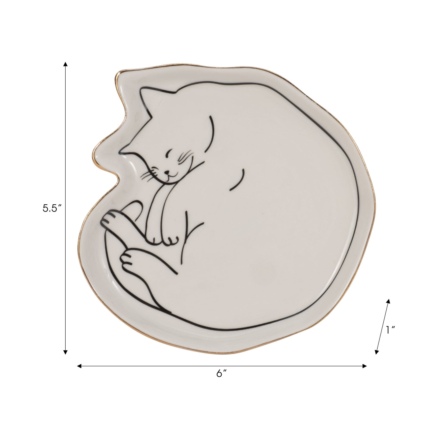 6" Cat Nap Trinket Tray W/ Gold Detail, White/blac - Al Rugaib Furniture