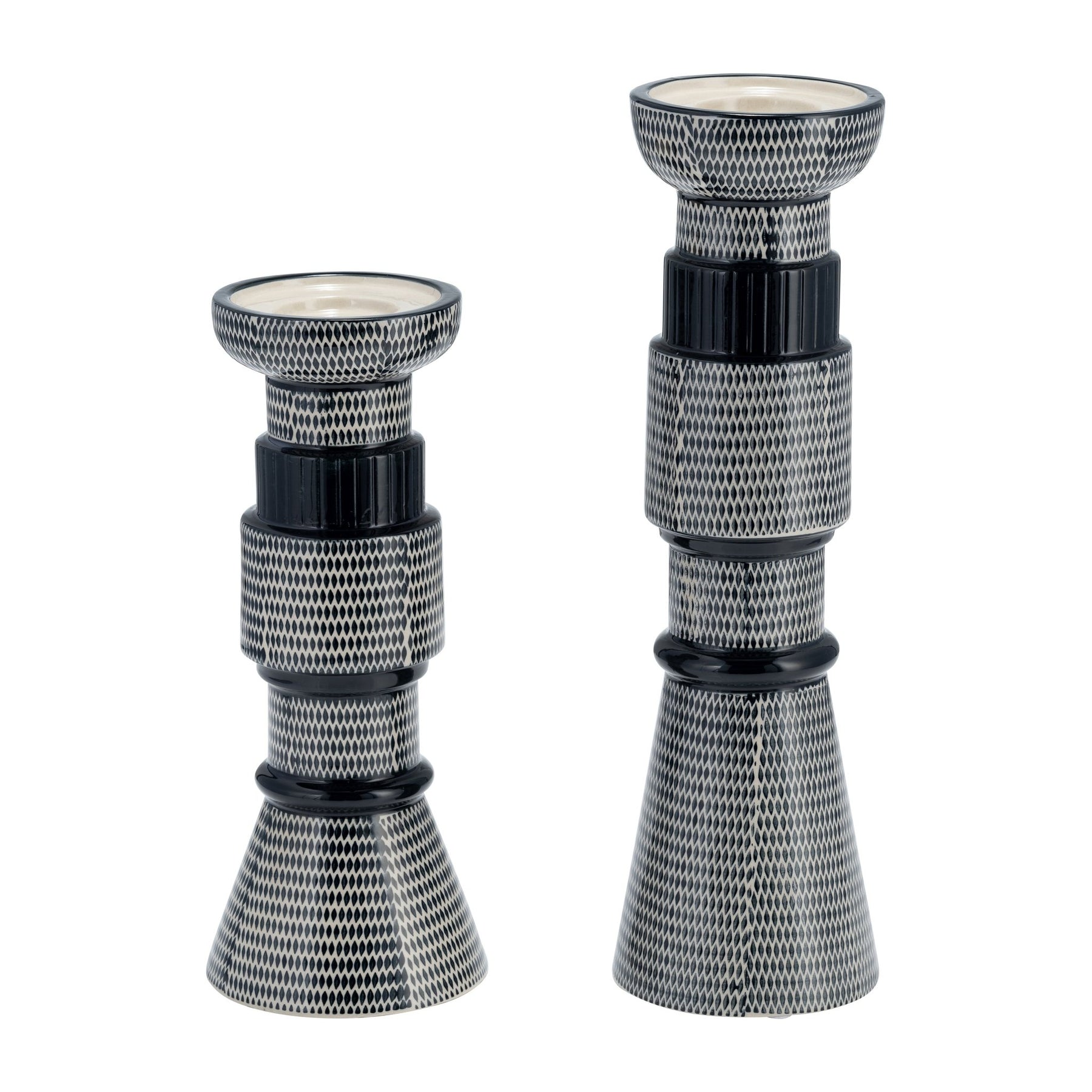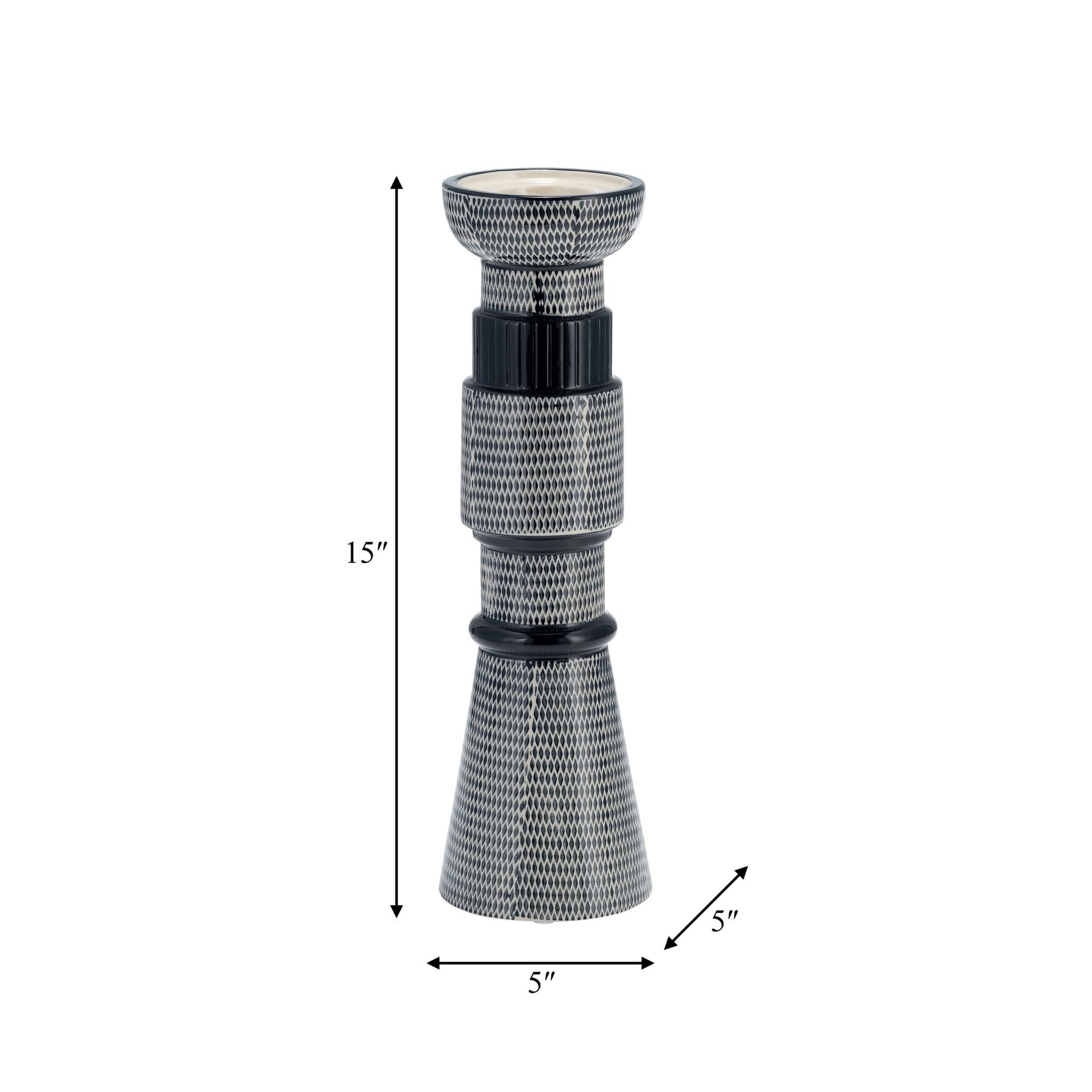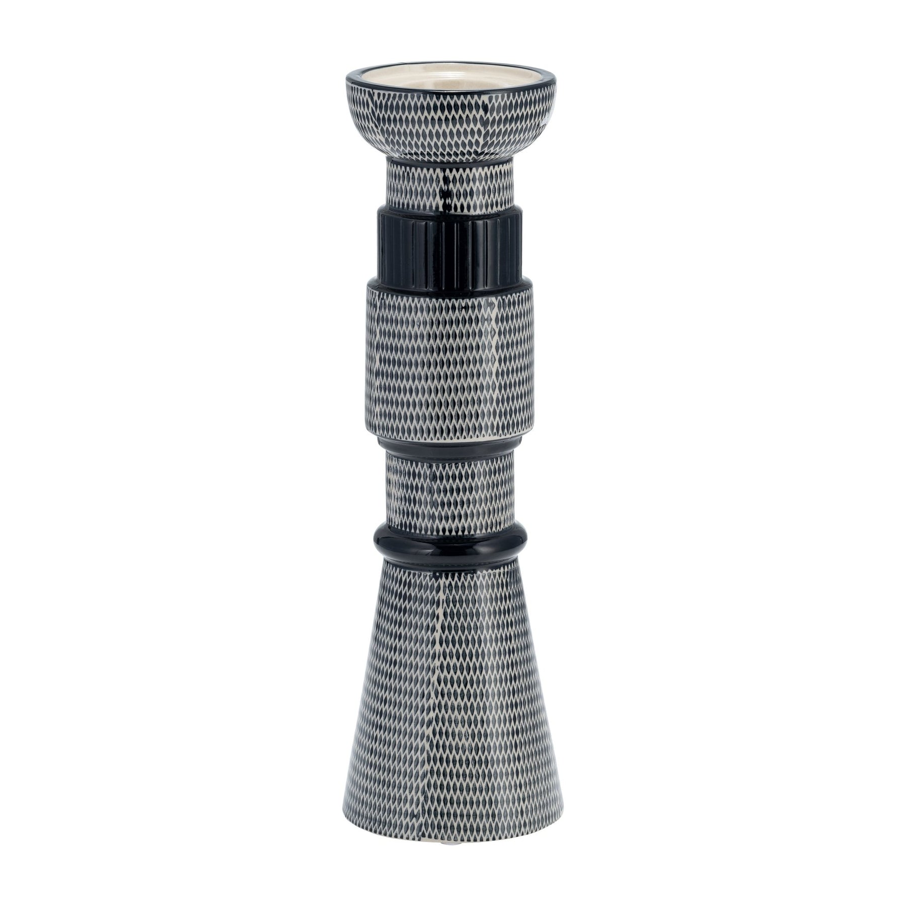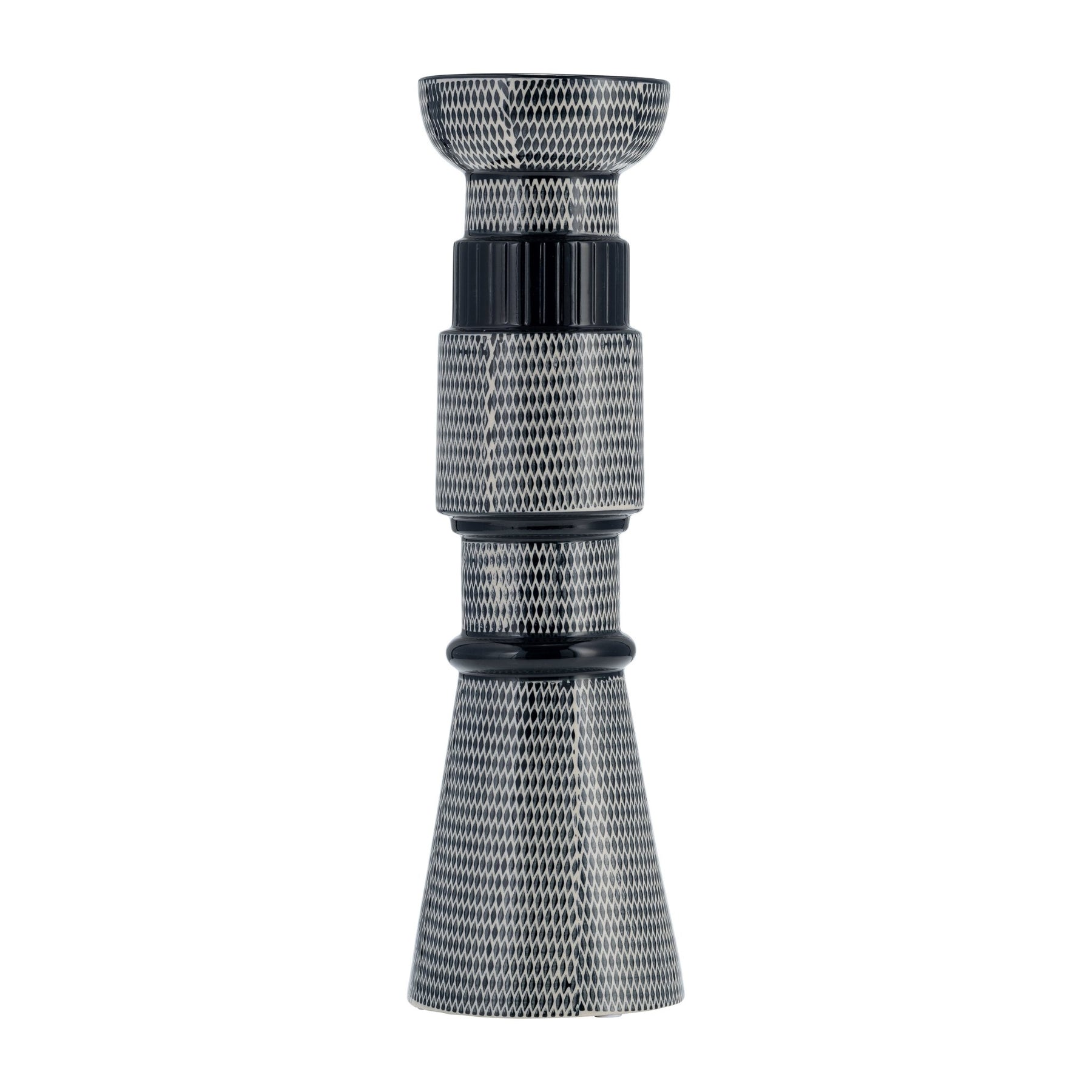 CER,15"DOTTED PILLAR CANDLE HOLDER,NVY BLUE/COTTON - Al Rugaib Furniture