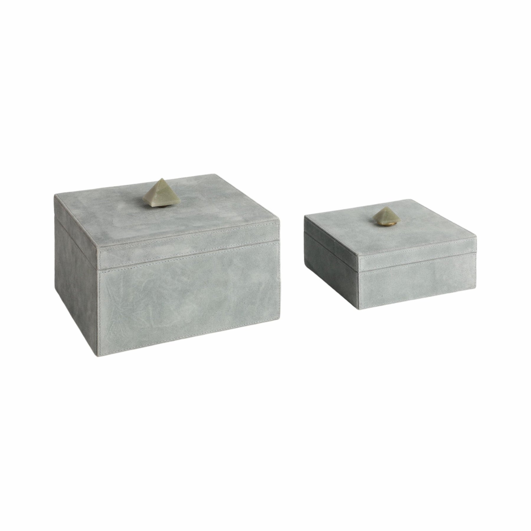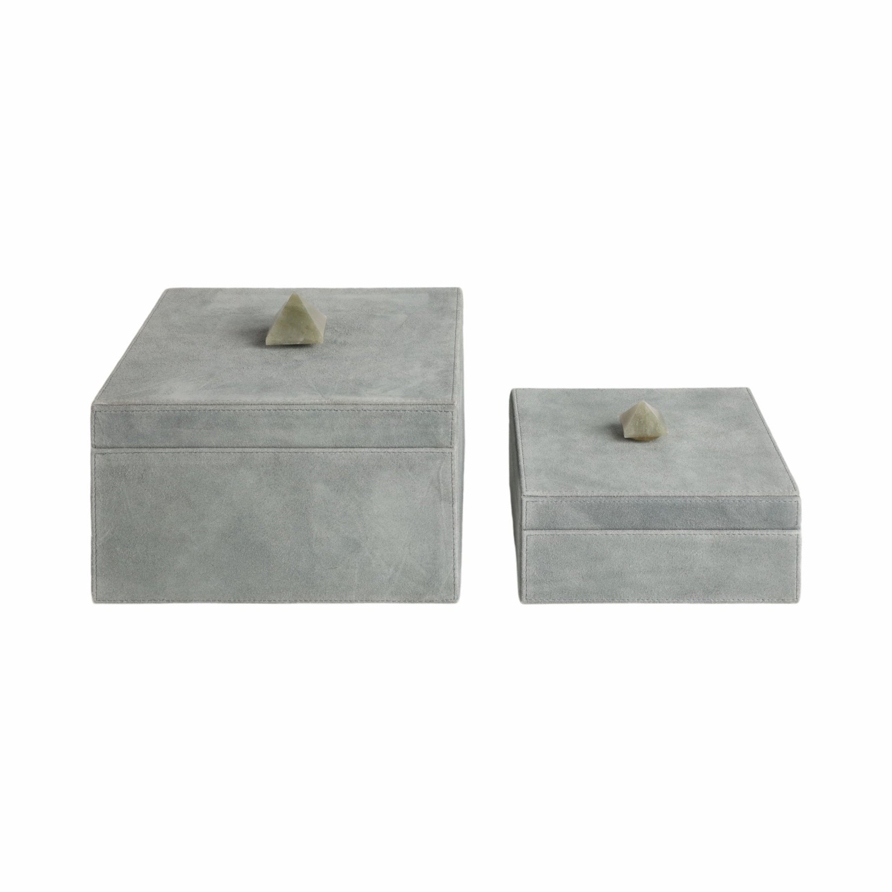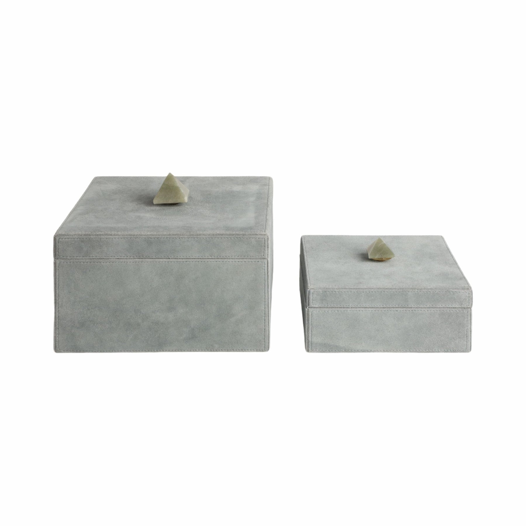 S/2 7/9" HARCOURT SUEDE BOXES W/STONE KNOB, BLUE - Al Rugaib Furniture