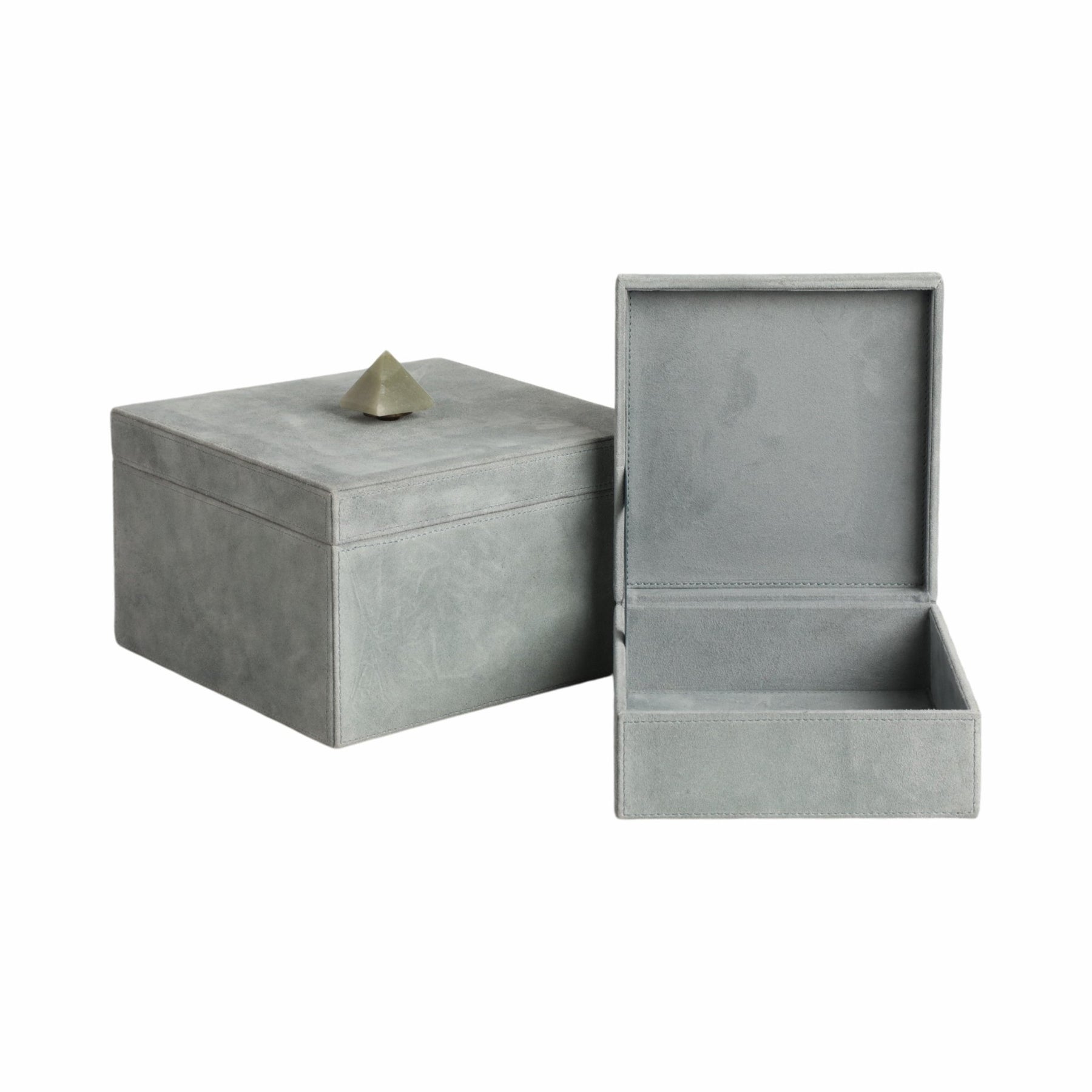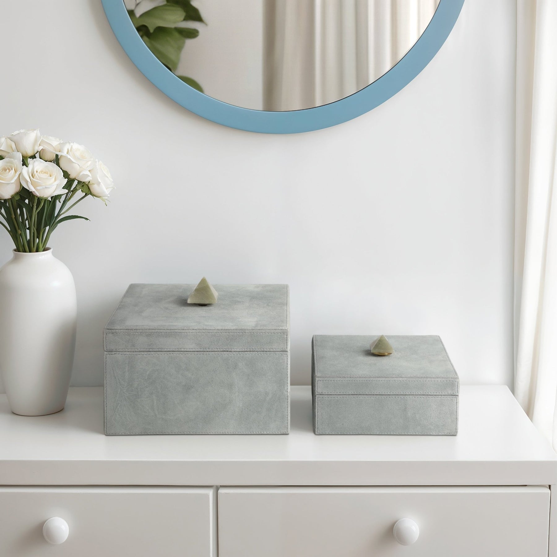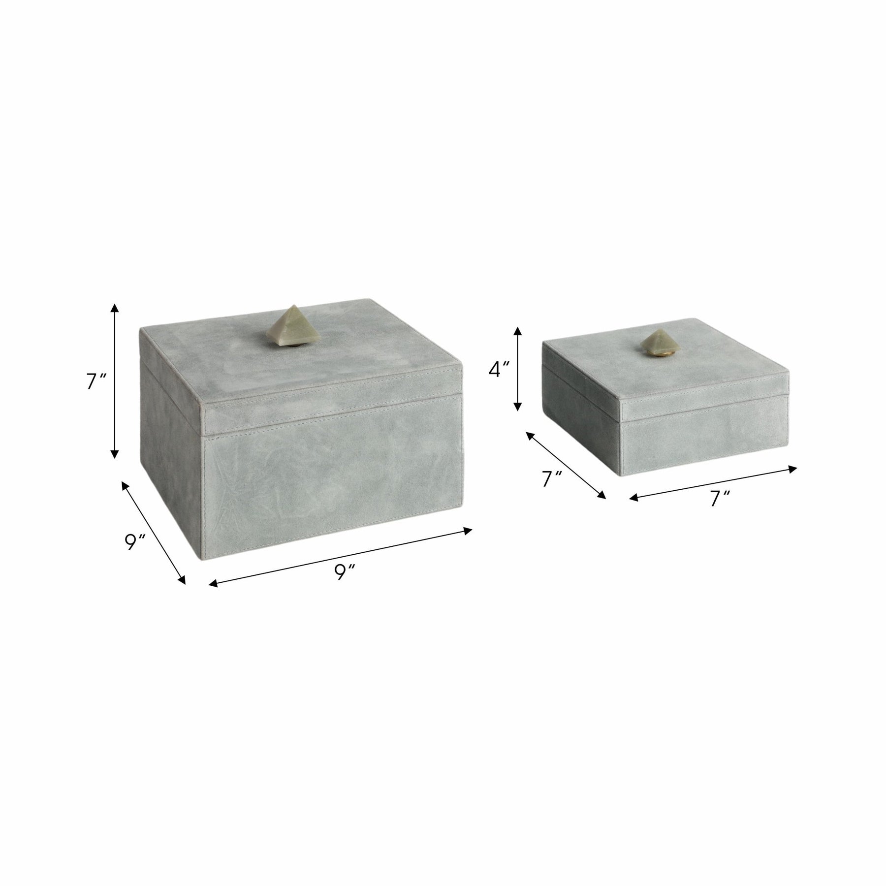 S/2 7/9" HARCOURT SUEDE BOXES W/STONE KNOB, BLUE - Al Rugaib Furniture