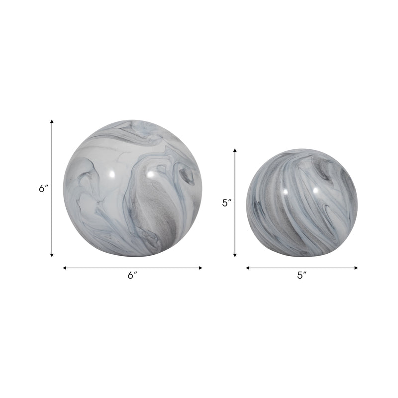 S/2 5/6 SERENITY BLUE SWIRL SPHERES