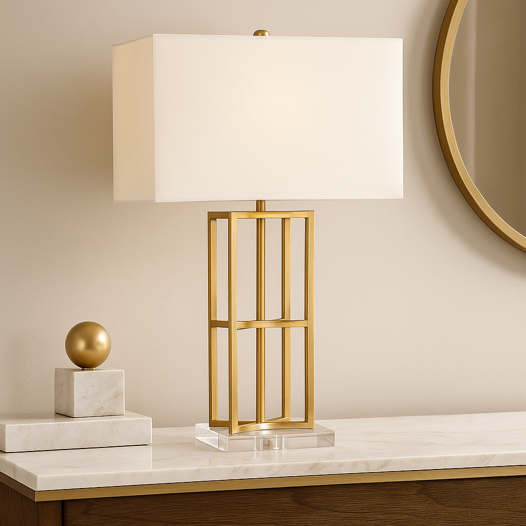 مصباح طاولة بتصميم قفص معدني - ذهبي