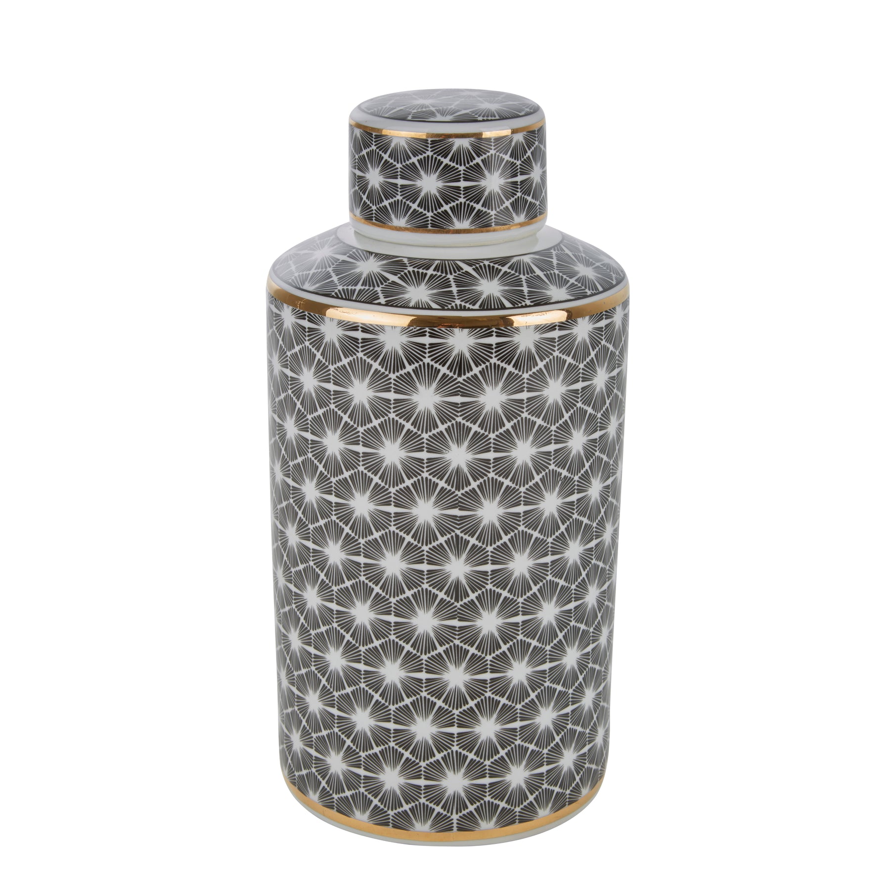 جرار سيراميك بالألوان الأبيض والأسود مع حافة ذهبية
