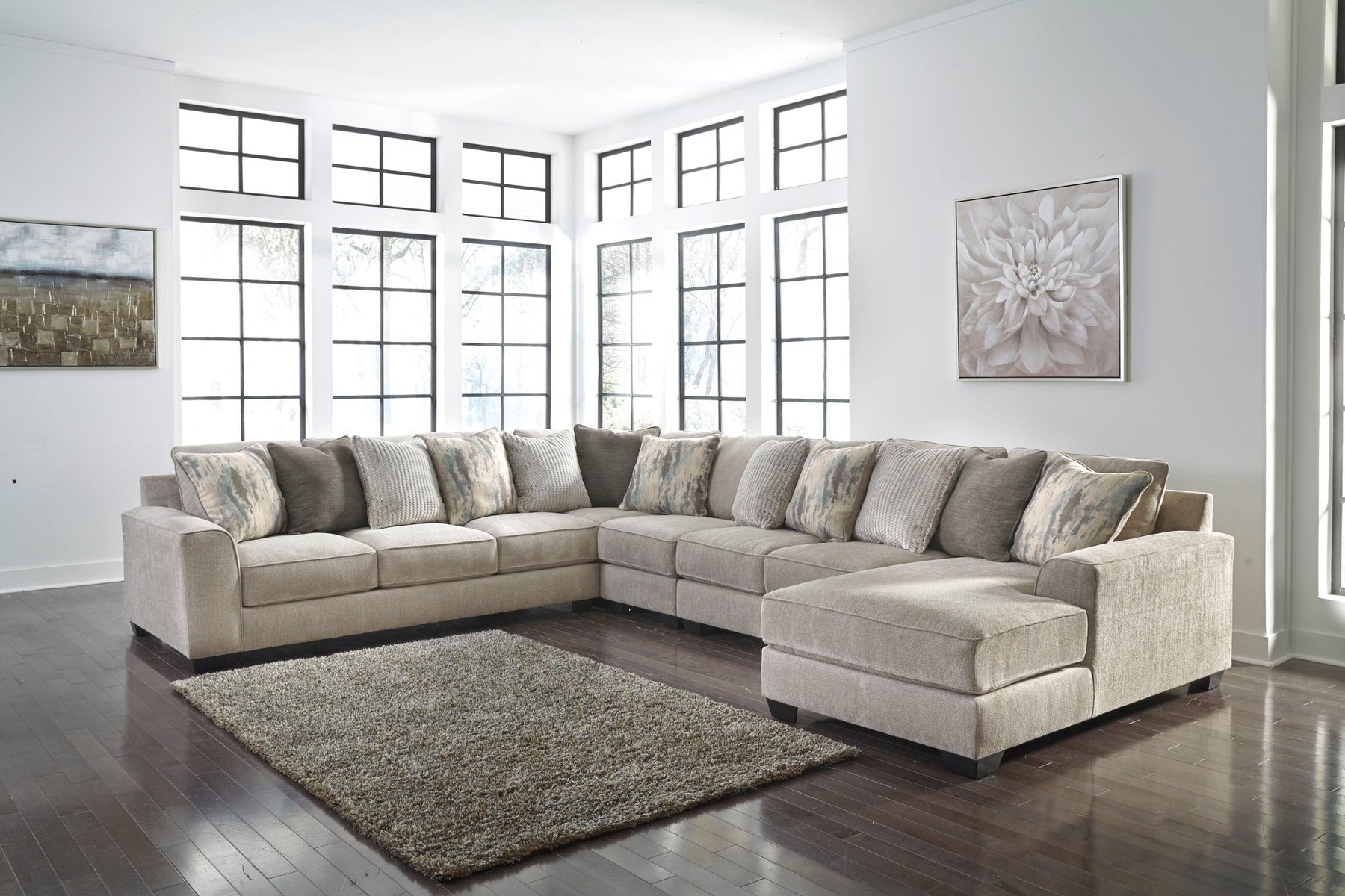 تتميز هذه الأريكة الكبيرة من Ardsley بأنها فخمة وأنيقة، وتوفر لك الراحة العميقة. تتميز بتصميمها البسيط مع مقاعد كبيرة وواسعة وتنجيد من قماش الشنيل المزخرف. ستجد الراحة في ظهرها الناعم ووسائد المقاعد القابلة للعكس. من المؤكد أن الضيوف سيتشاجرون على من سيسترخي على كرسي الزاوية لأنها مثالية لرفع ساقيك وبسطهما. يتم تضمين 12 وسادة مزخرفة بألوان مائية وتصميمات تجريدية ممتعة لإضفاء جمال فريد وحديث على المظهر.