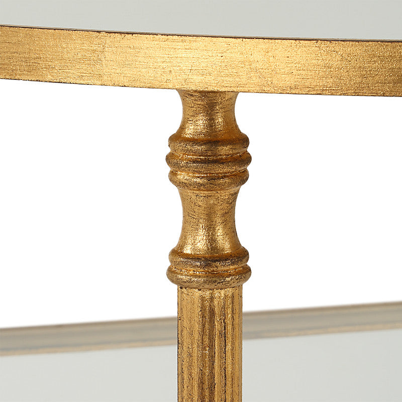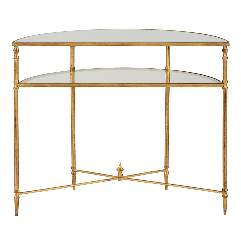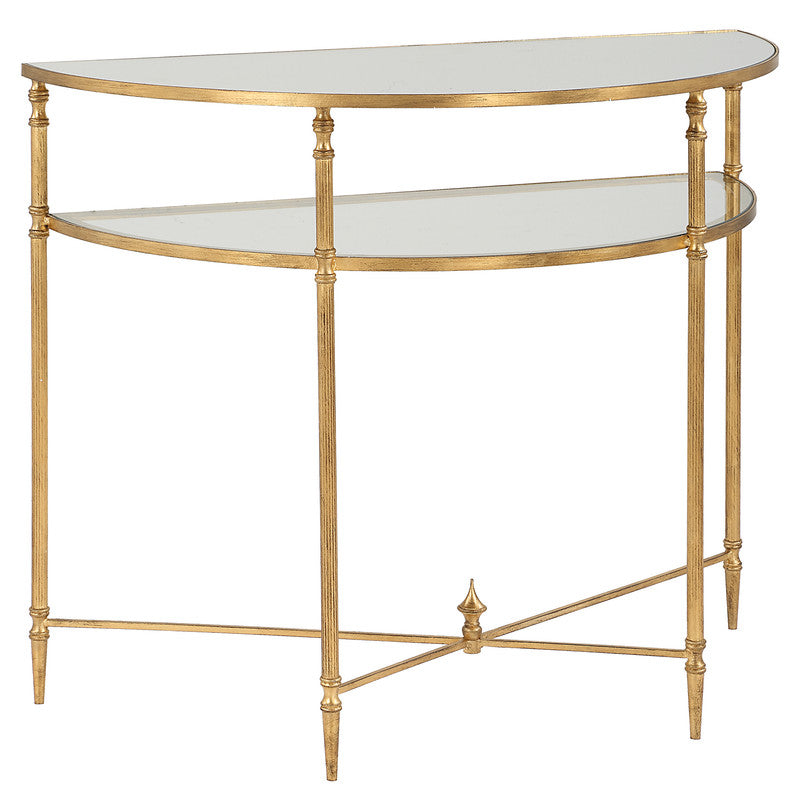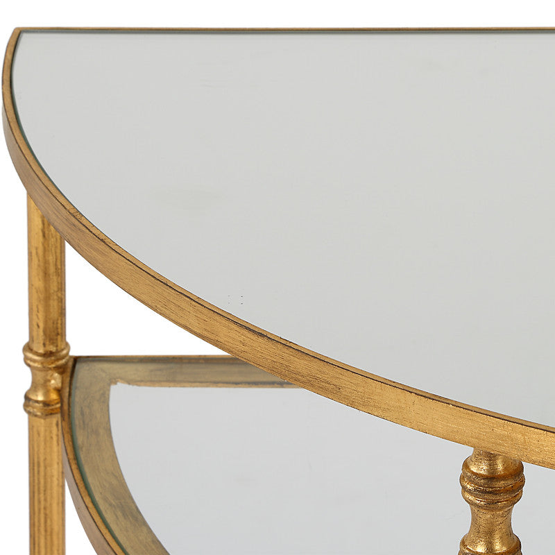 طاولة كونسول هينزلر بعرض 91 وارتفاع 76 وعمق 45 سم ذهبية الشكل نصف دائري بسطح مرآة
