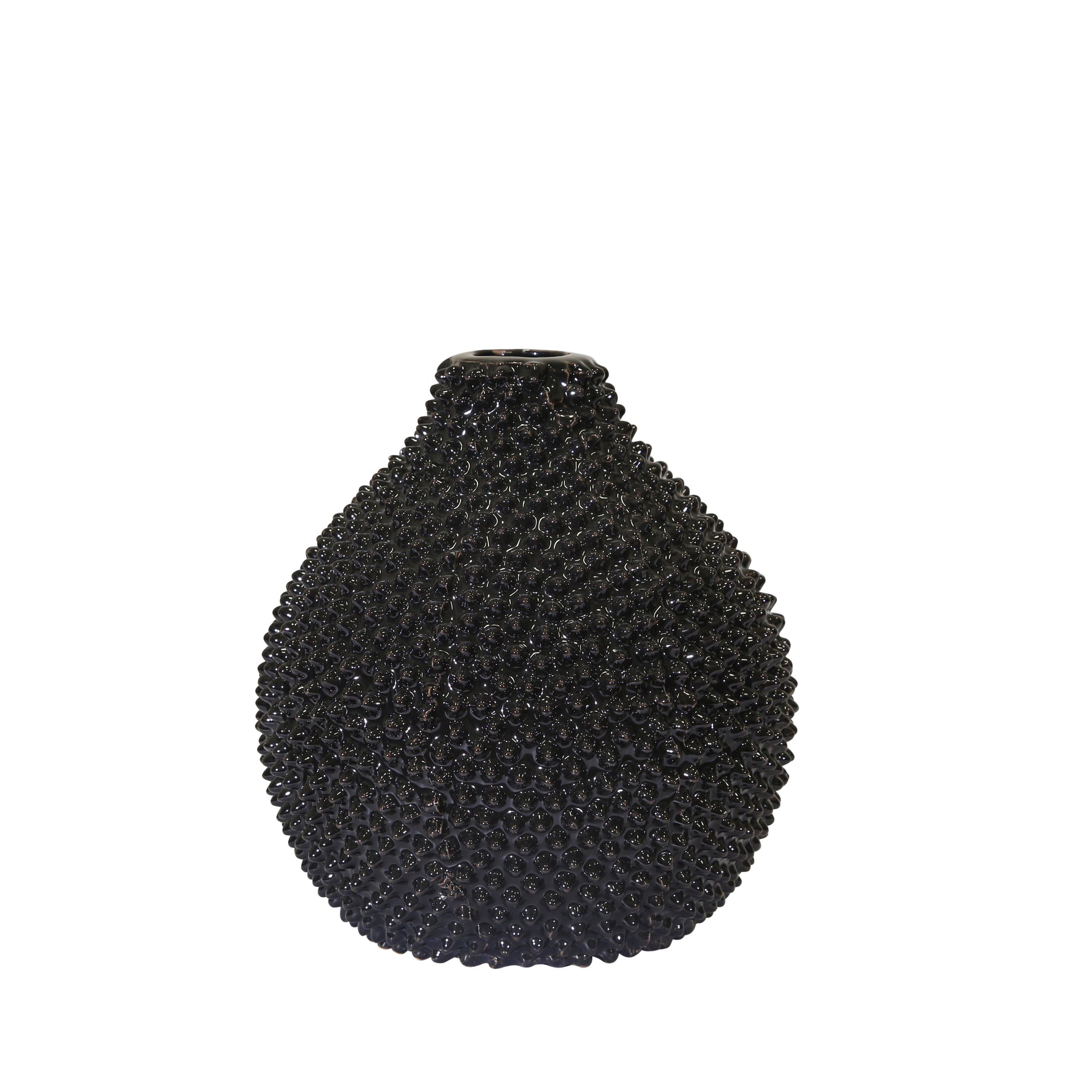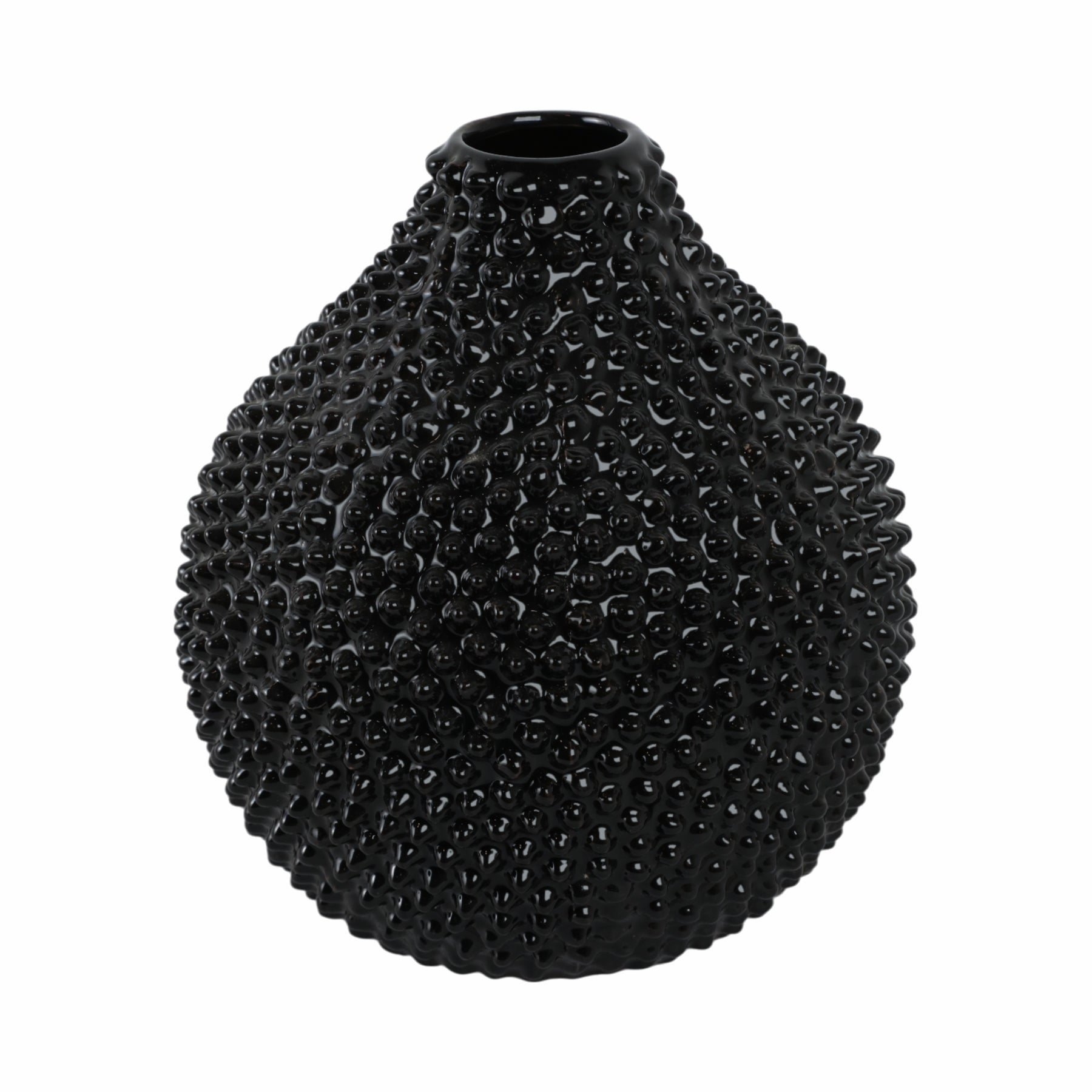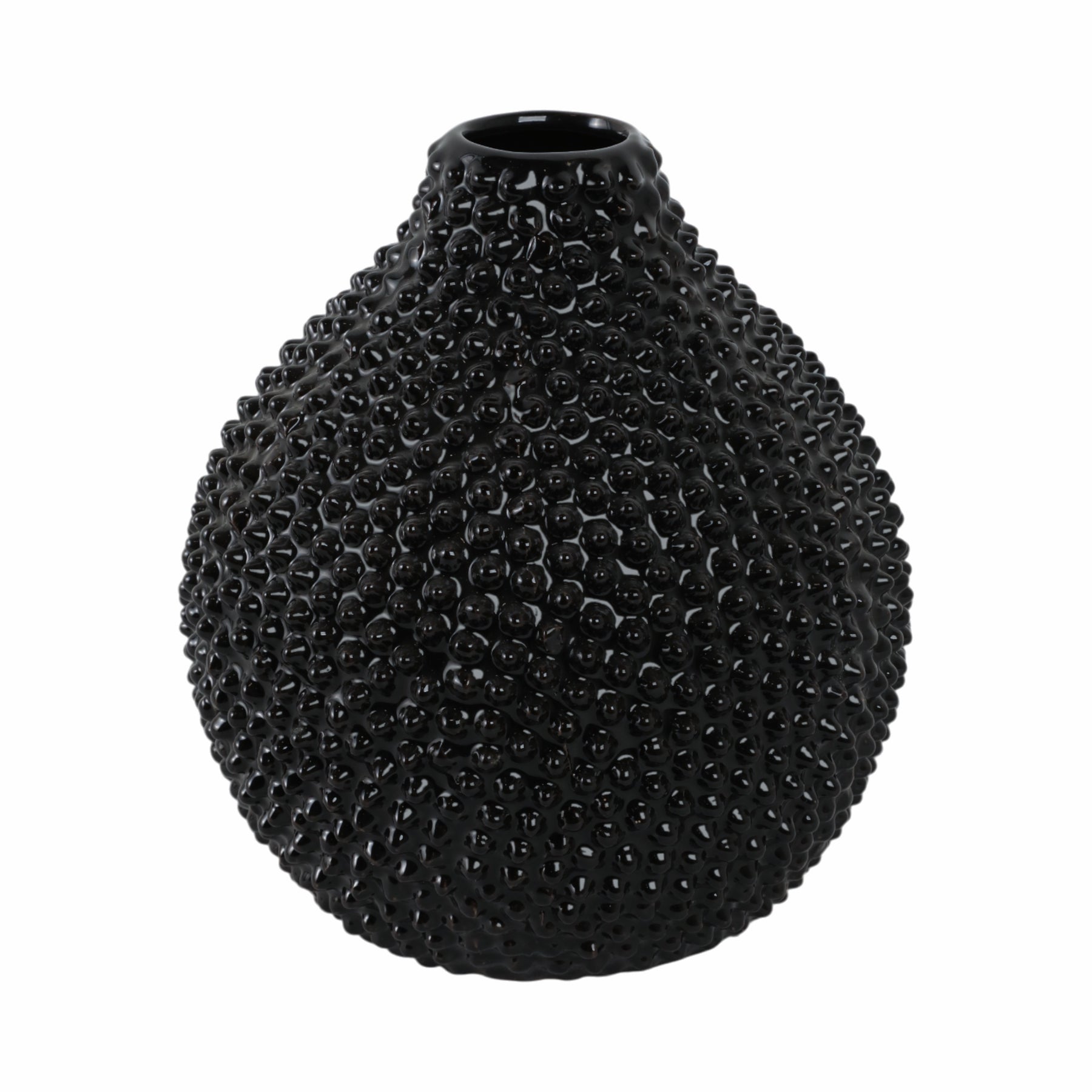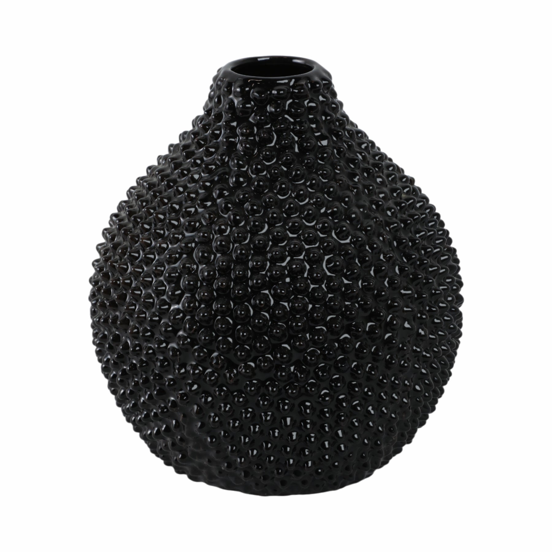 فازة سيراميك سوداء لامعة مزينة بالأشواك 8 إنش