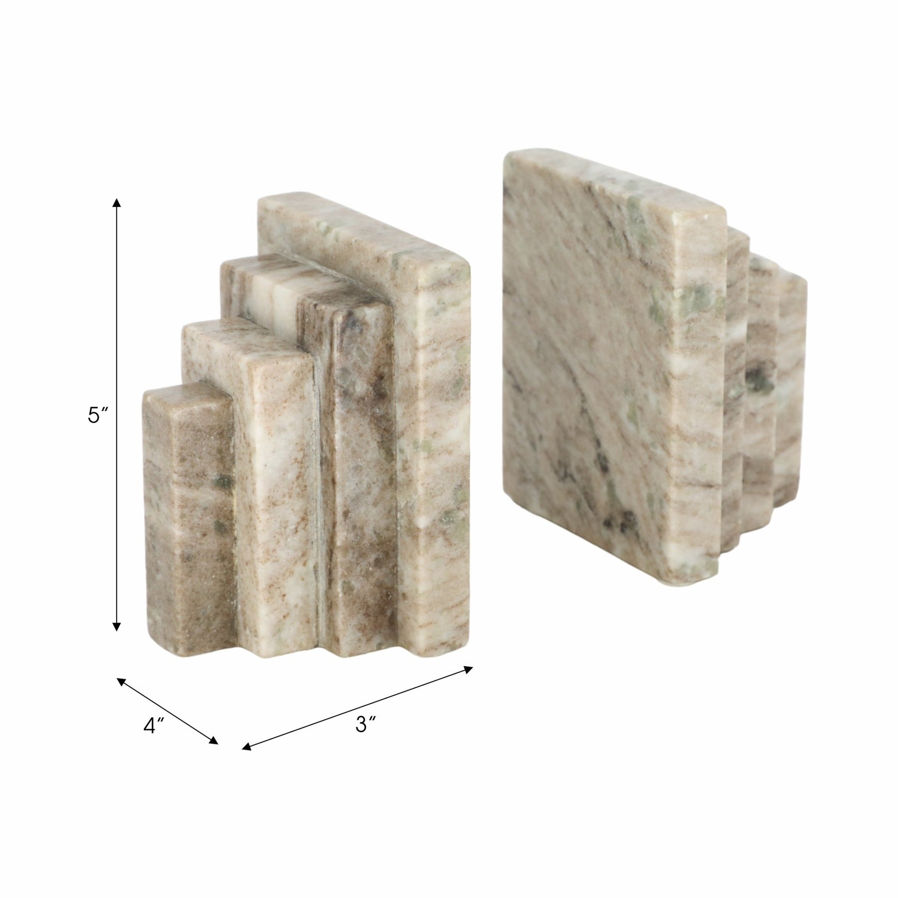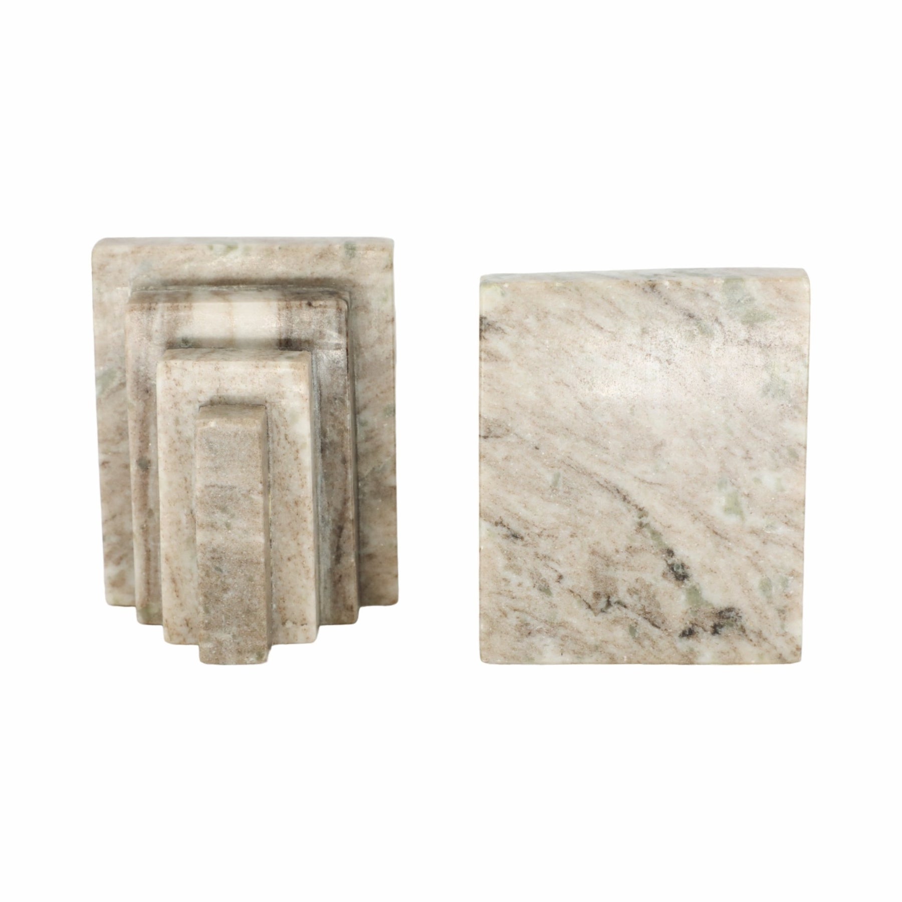 S/2 5" Onyx Marble Block Bookends, Tan - Al Rugaib Furniture