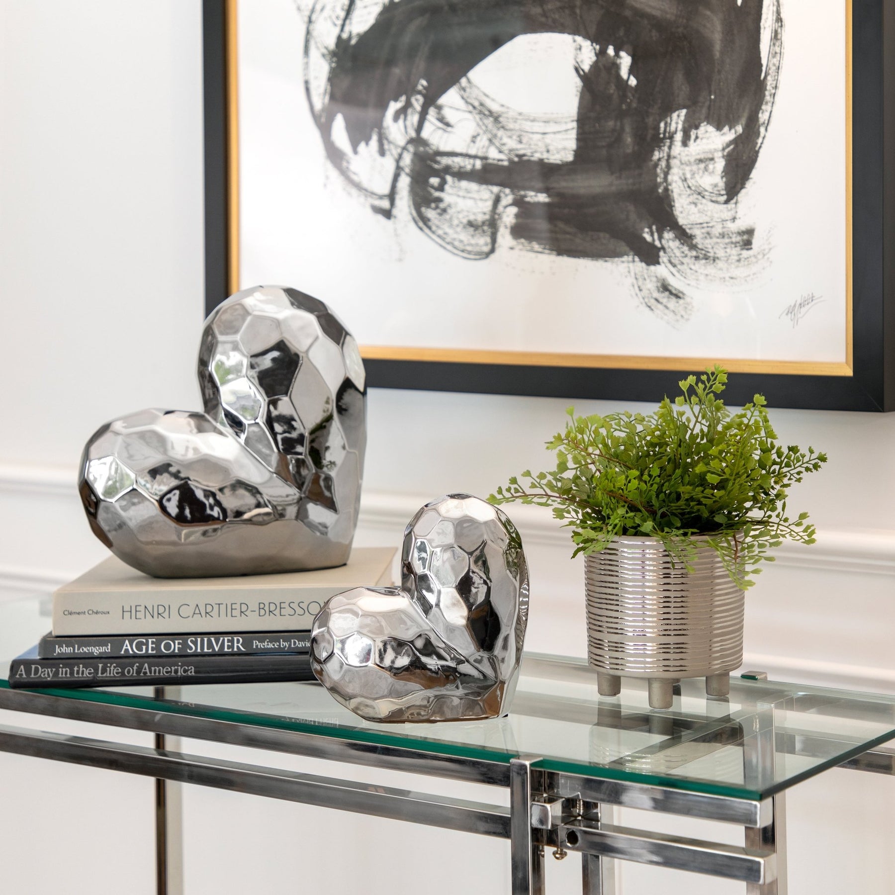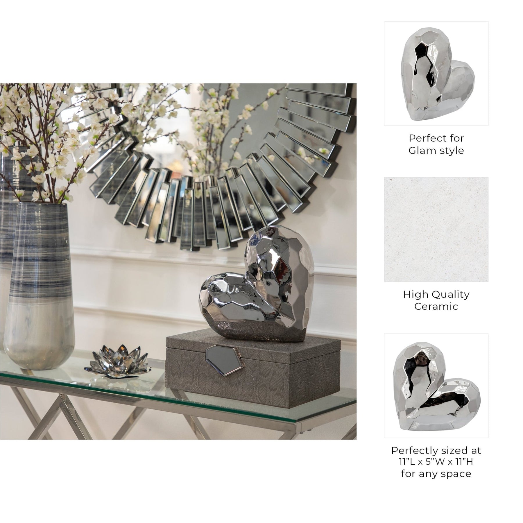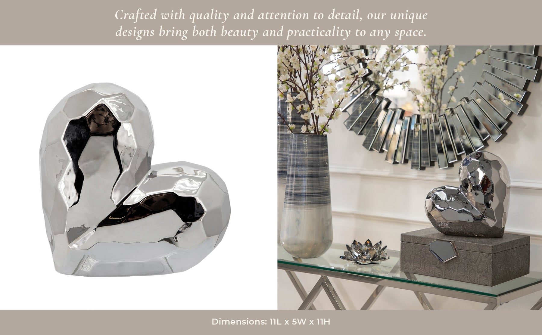 Give your romantic side a chance to shine in your living space with this beautiful 11.5" silver heart. Featuring a pitted surface design to add texture to your decor and style. Show your taste in decor with a bold statement this season.Sagebrook Home has been formed from a love of design, a commitment to service and a dedication to quality. They create and import fashion forward items in the most popular design styles. Backed with years of experience in the textile field, They are now providing a complete Home decor story. the combination of wall decor, furniture, lighting and Home accessories are all coordinated with textiles to provide a complete Home look. Sagebrook Home is committed to providing the best Home decor and accent pieces at value prices.