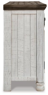 حامل تلفاز هافالانس استمتع بأسلوب المزرعة الحديث مع حامل تلفاز هافالانس. يجمع لونه الأبيض العتيق مع الرمادي المتآكل للحصول على مظهر ساحر للغاية. يمكن فتح الخزائن اليمنى واليسرى للكشف عن أرفف قابلة للتعديل لجميع احتياجات تخزين مركز الترفيه الخاص بك. تضيف الأبواب الزجاجية المركزية إلى جاذبيتها المريحة.