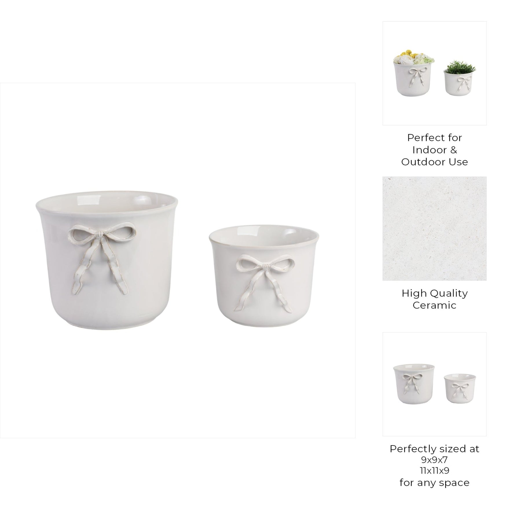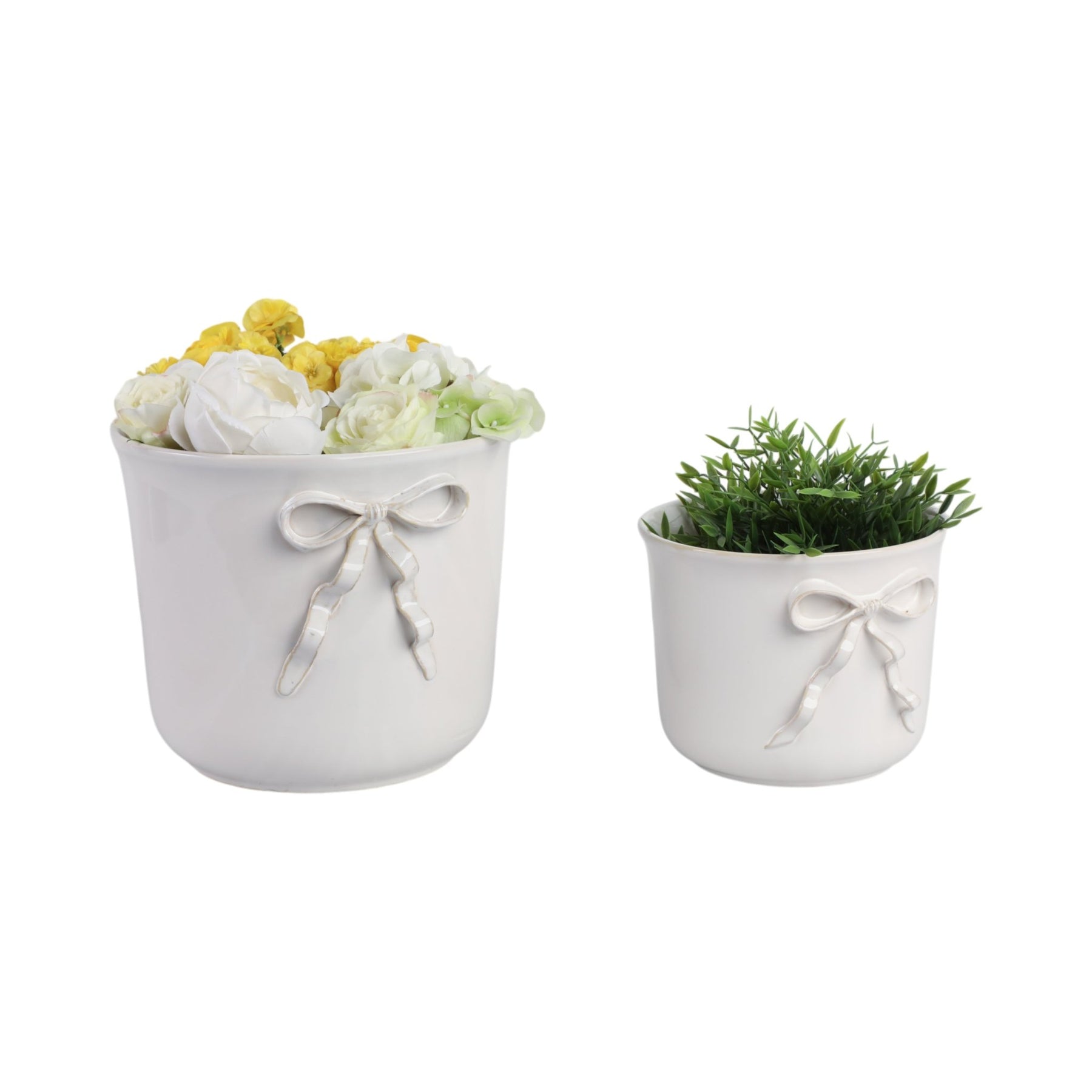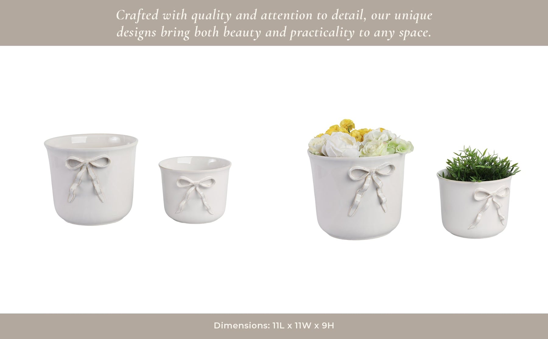 S/2 9/11" Pretty Bow Planters, White - Al Rugaib Furniture
