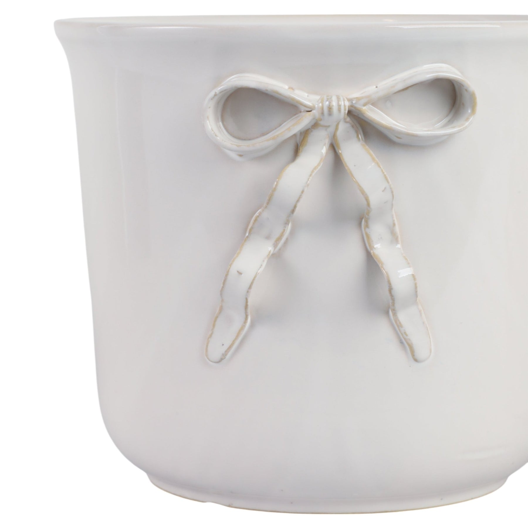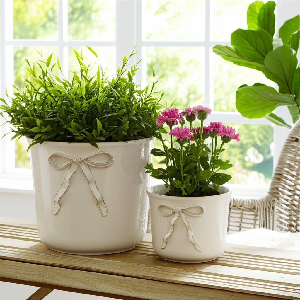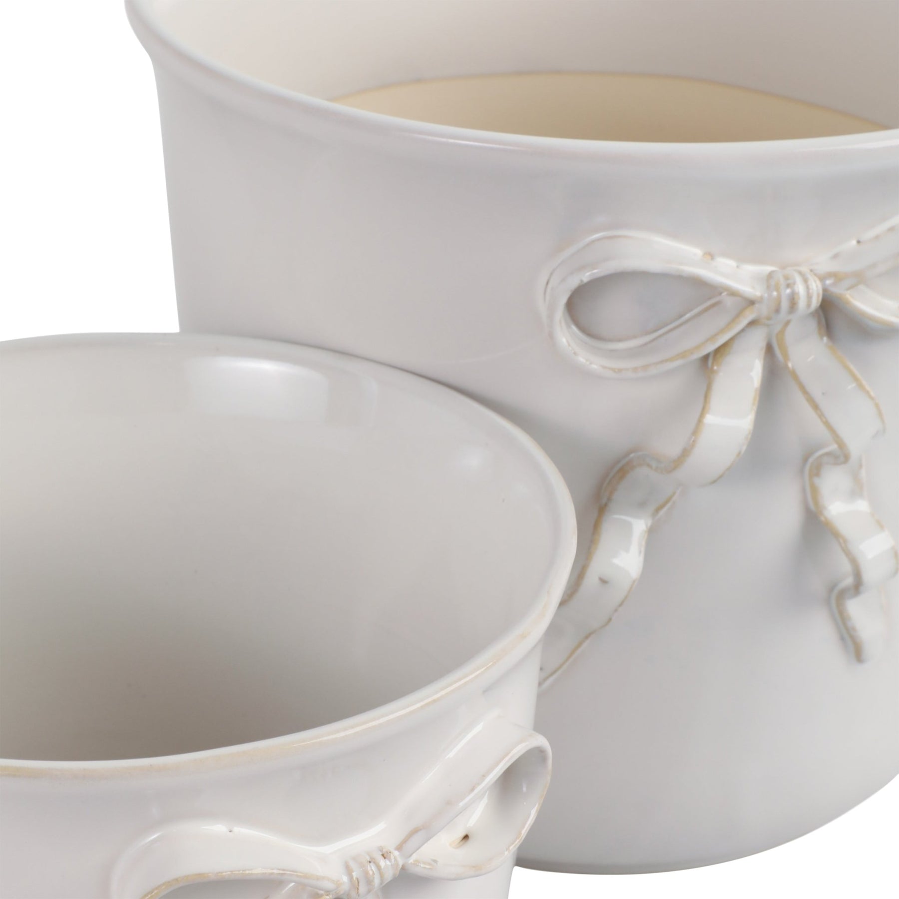 S/2 9/11" Pretty Bow Planters, White - Al Rugaib Furniture