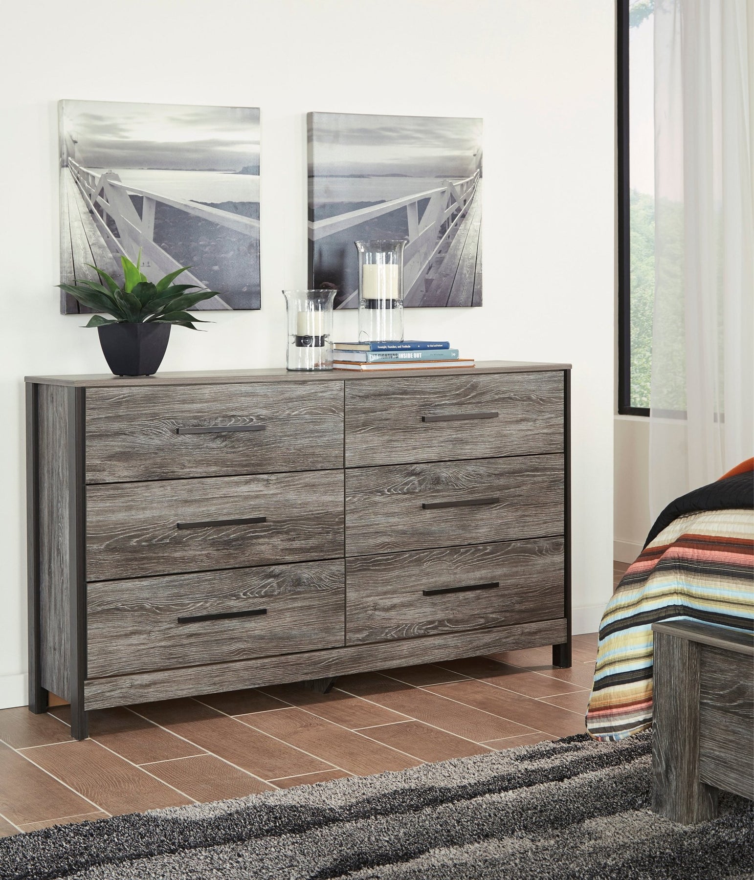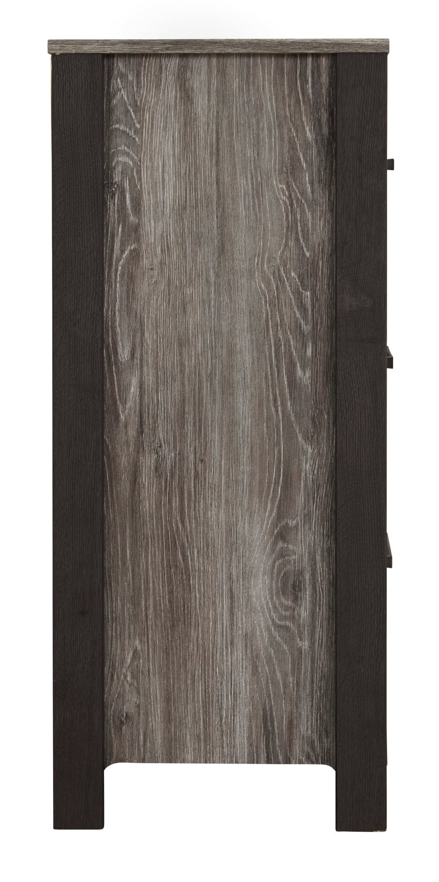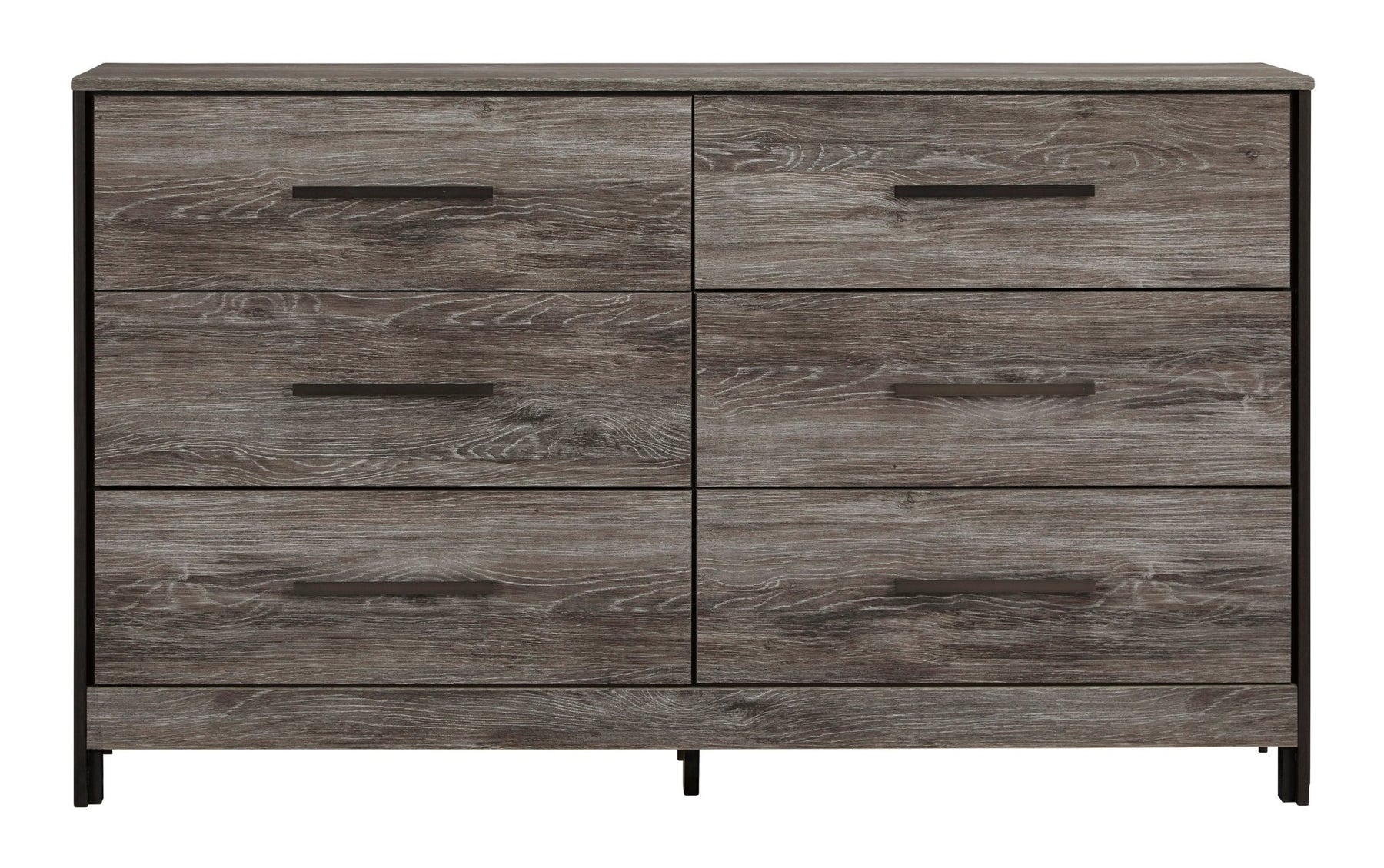 خزانة ملابس فقط؛ مصنوعة من الخشب الهندسي (MDF/لوح خشبي مضغوط) ورقائق زخرفية؛ لمسة نهائية رمادية دافئة ريفية فوق حبيبات خشب البلوط المقلدة؛ إطار مزين بلمسة نهائية من الفحم الداكن فوق حبيبات خشب البلوط المقلدة؛ مقابض أدراج معدنية بلمسة نهائية من البرونز الداكن؛ 6 أدراج تنزلق بسلاسة مبطنة برقائق من الكتان الصناعي للحصول على مظهر نهائي؛ السلامة هي الأولوية القصوى، تم تصميم وحدات تخزين الملابس لتلبية أحدث معيار للاستقرار، ASTM F 2057 (ASTM International)؛ تمتد الأدراج لاستيعاب أقصى قدر من الوصول إلى الجزء الداخلي من الدرج مع الحفاظ على السلامة؛ التجميع مطلوب