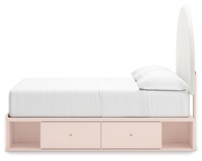 سرير Wistenpine المبطن بالكامل مع مساحة تخزين يحافظ على روح الجمالية العصرية لمنزلك مع تلبية جميع احتياجات طفلك. يضفي تنجيده المريح واللطيف واللمسة النهائية الوردية الرقيقة أجواءً مرحة وساحرة على وقت النوم. مصنوع لها ومصمم لك، إنه إضافة رائعة لغرفة نوم الطفل الأنيقة الجميلة.