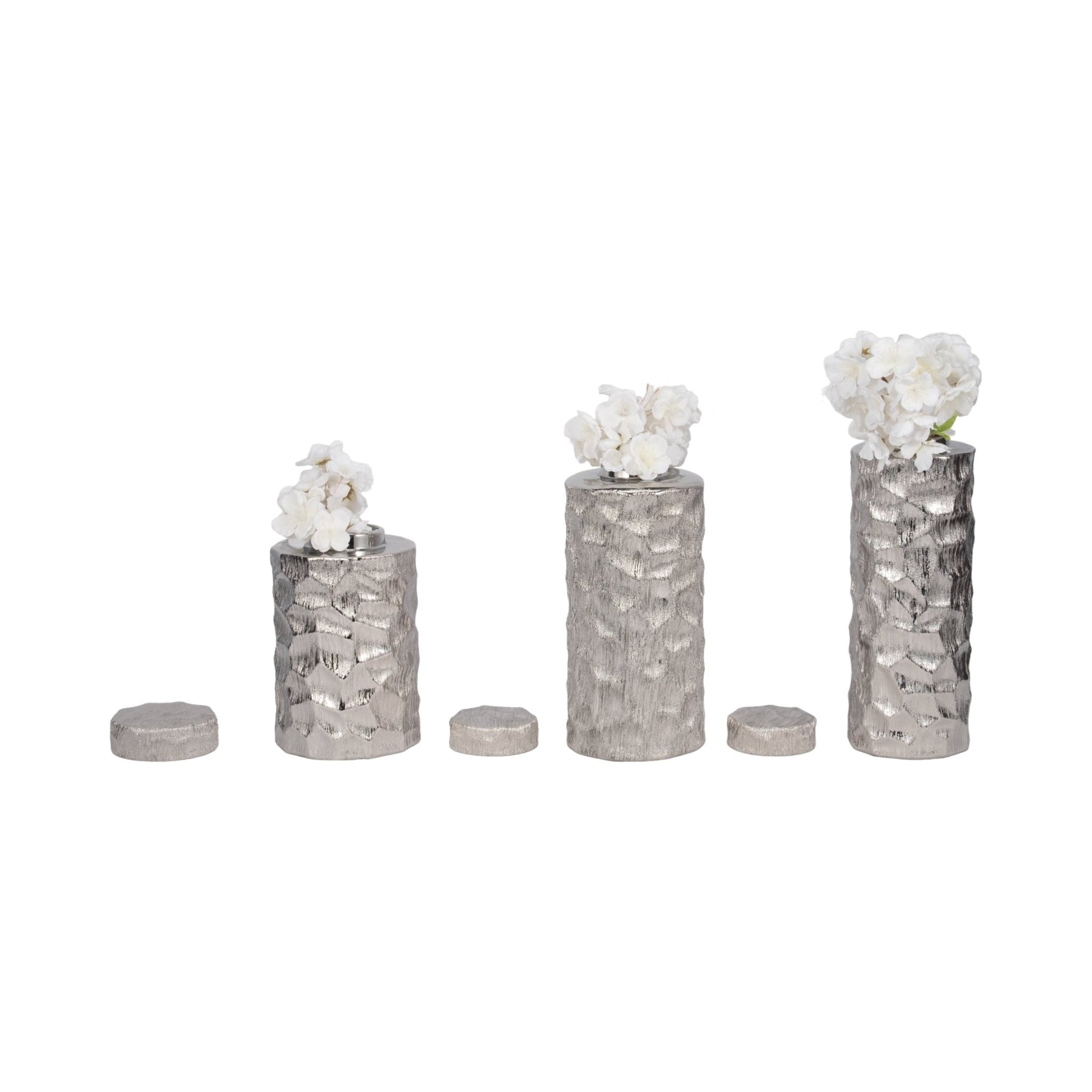S/3 10/13/14" Anita Silver Ceramic Lidded Jars - Al Rugaib Furniture
