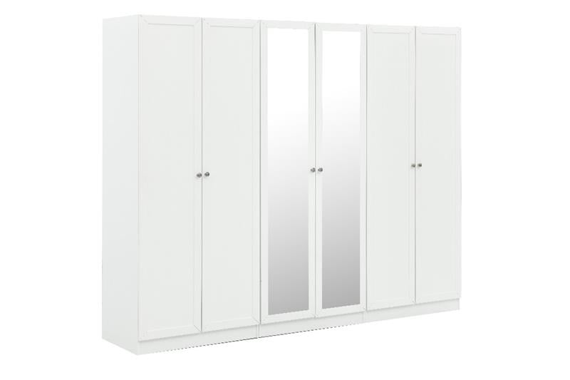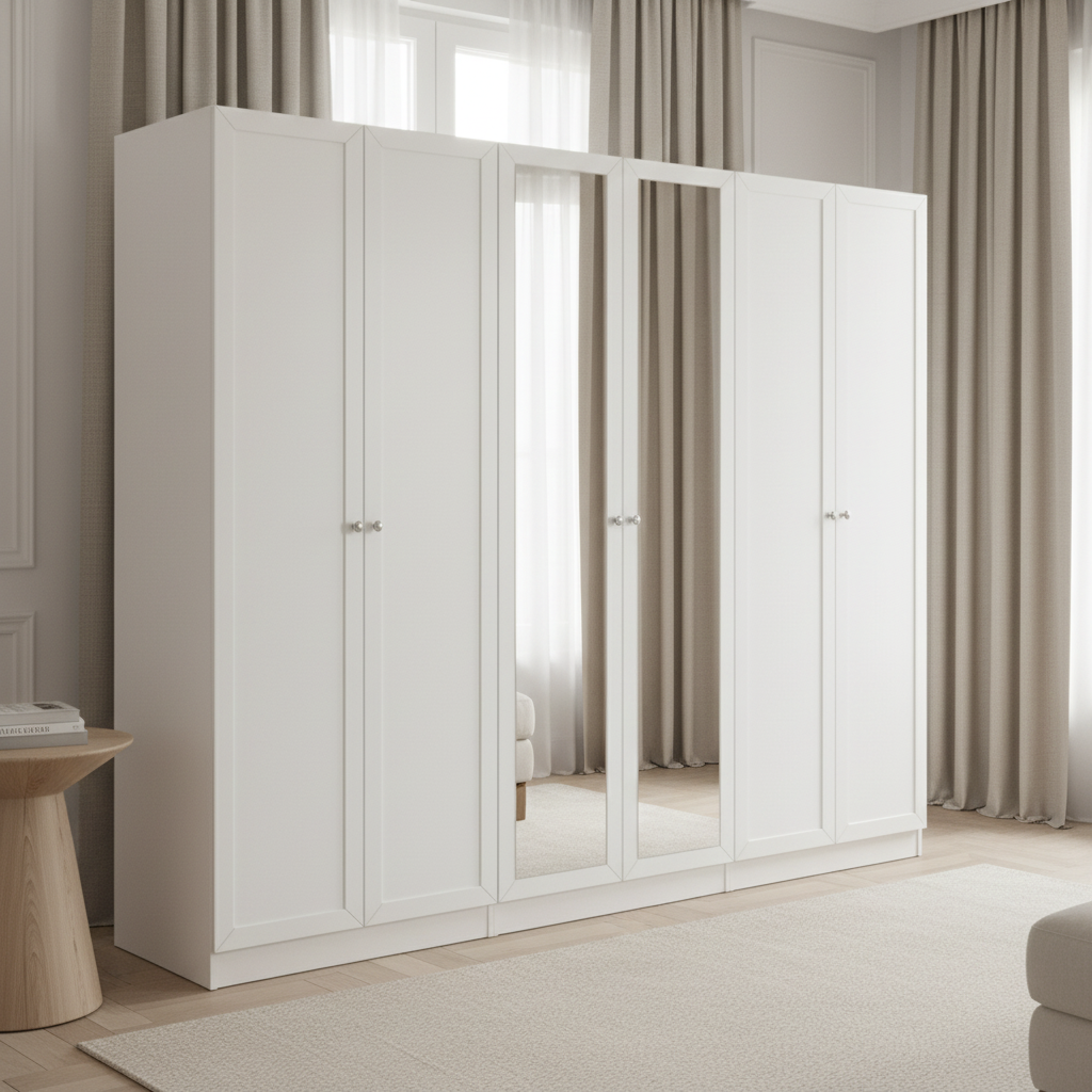 خزانة بروفنس البيضاء بأبواب خشبية و2 مرآة