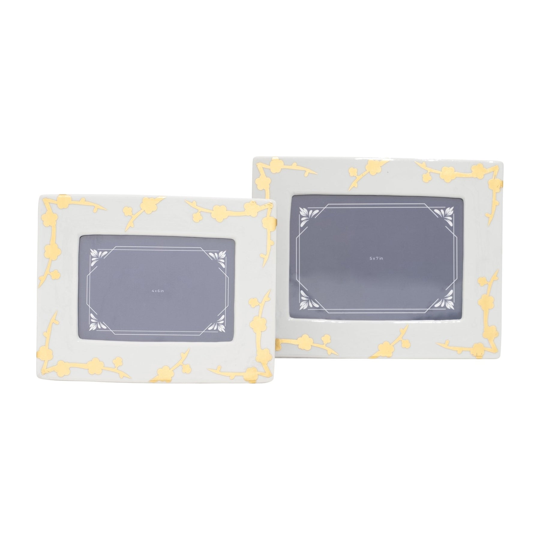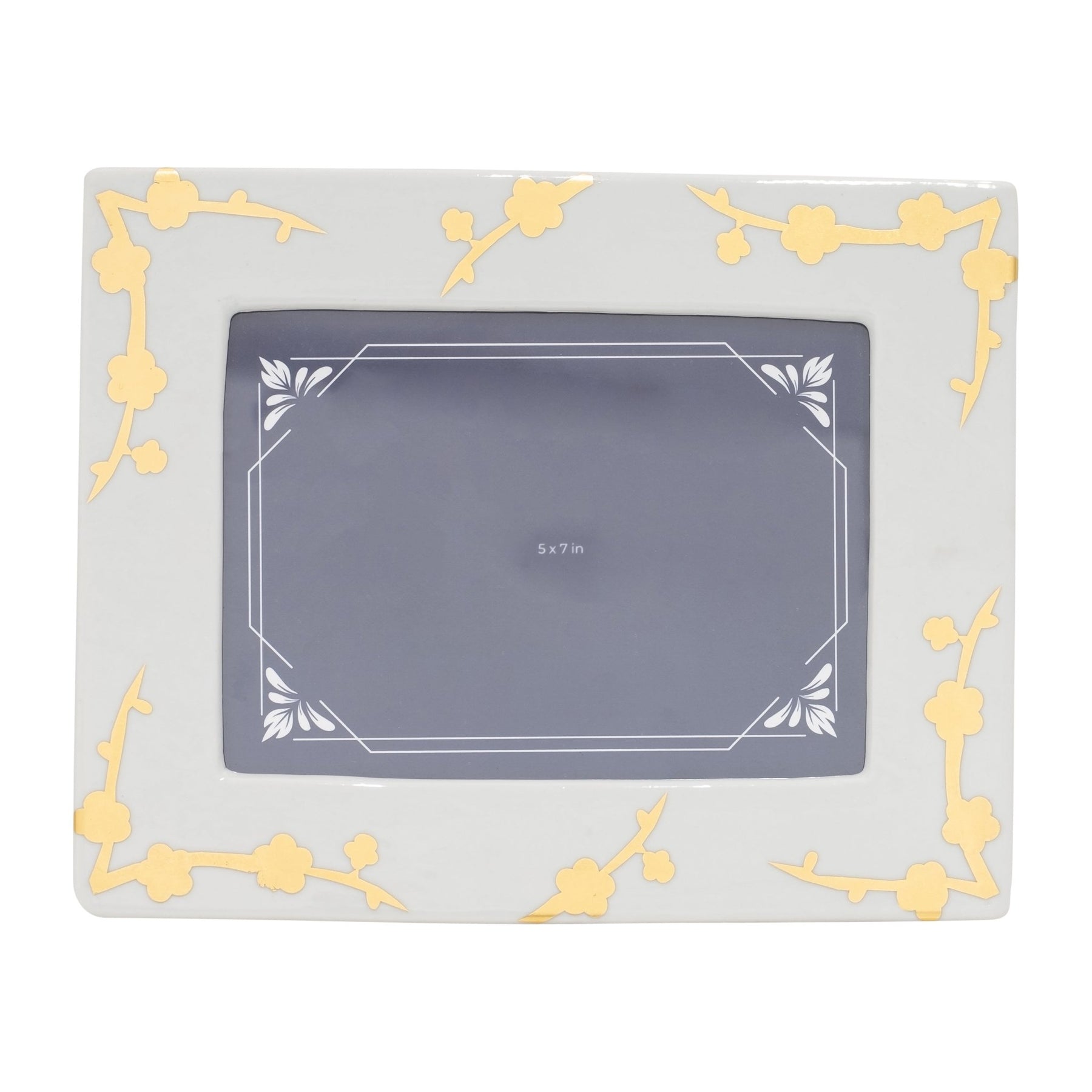 CER, 5X7 CHERRY BLOSSOM PHOTO FRAME, GOLD/WHITE - Al Rugaib Furniture