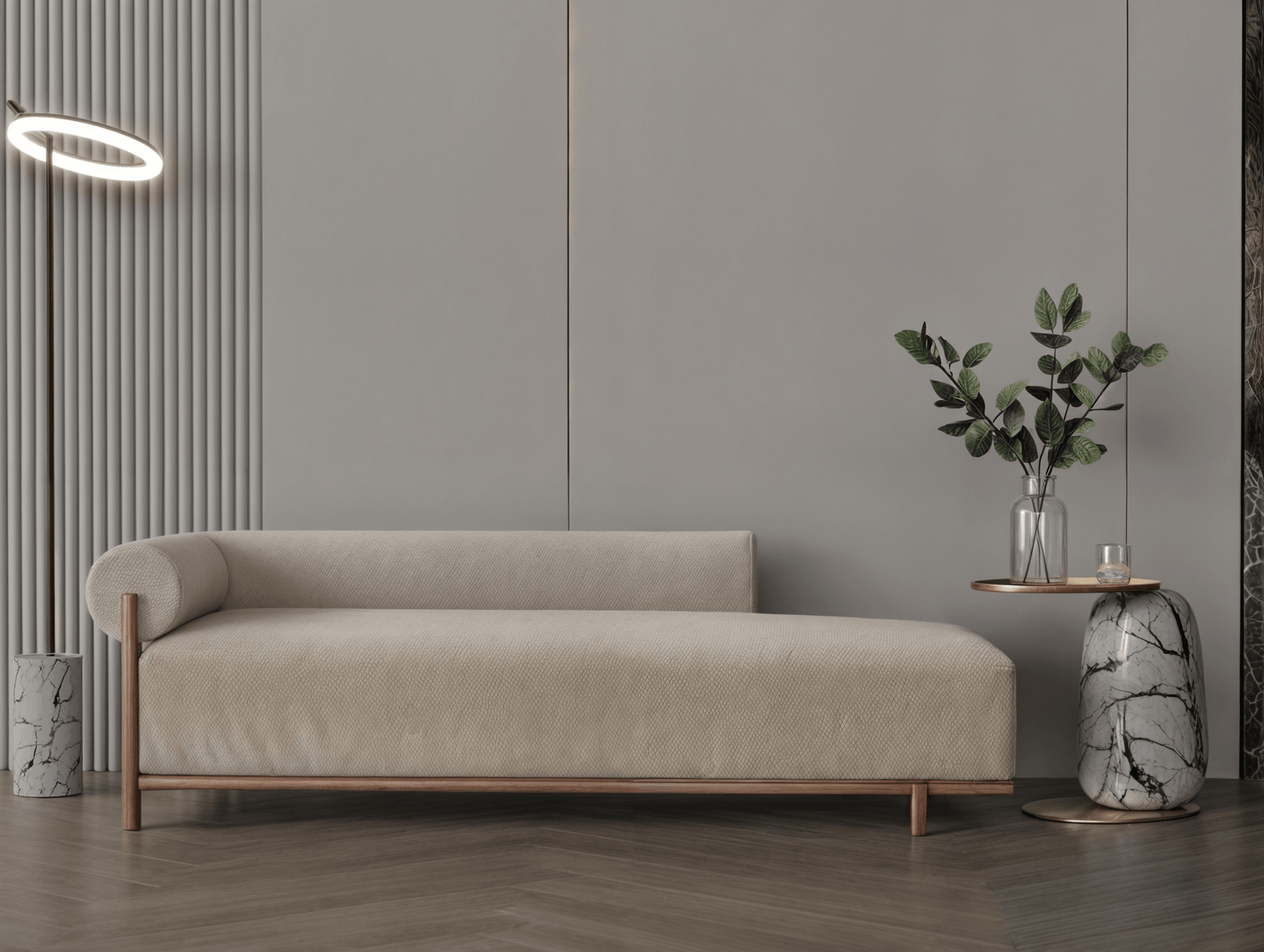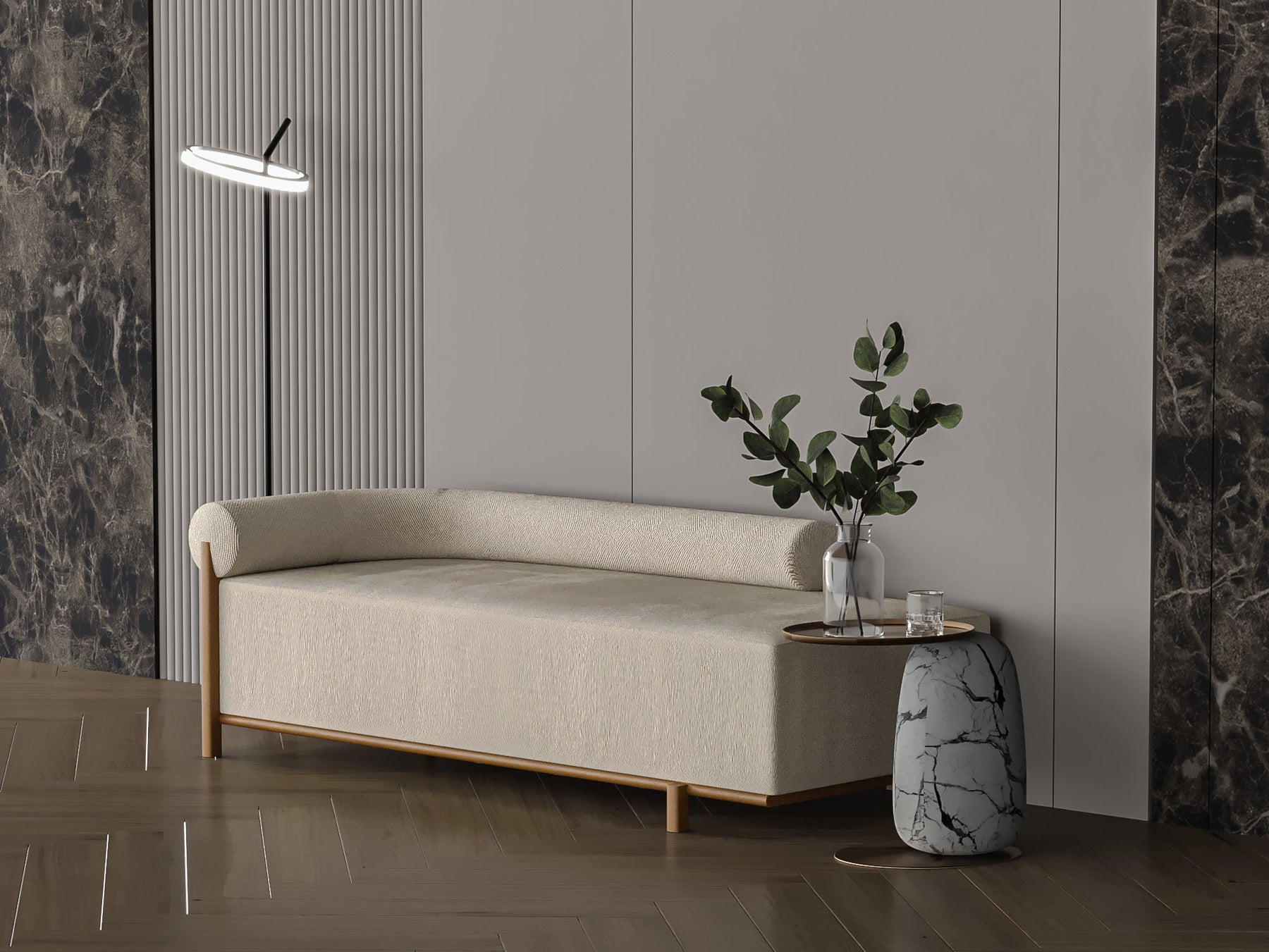 Beige Chanel fabric sofa 215x85x43 cm.