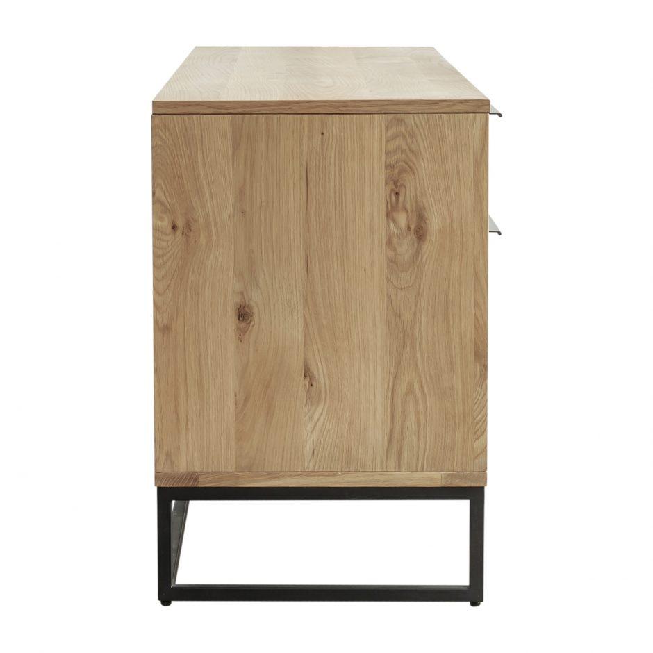 The Nevada Media Cabinet is the ultimate media storage. Complete with drawers and cabinets, you'll have plenty of room to store everything from books to photo albums to board games. Long-lasting oak and a metal base make this a solid piece for your home. طاولة تلفزيون Item Material: Solid Oak doors and drawers, Oak Veneer, Iron Base, MDF frame Item Color: Brown Item Height: 68.58 Item Width: 149.86 Item Depth: 45.72