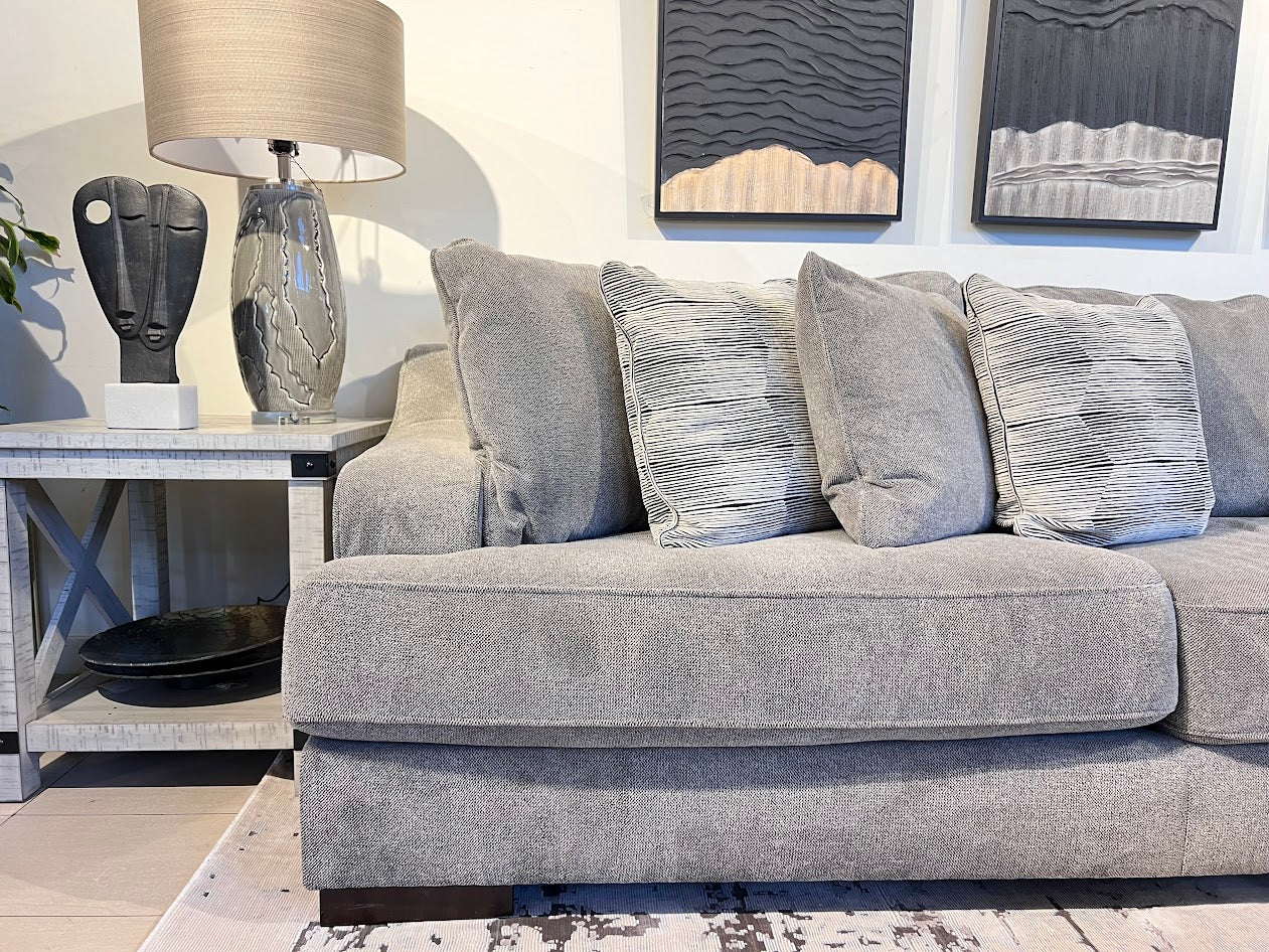 Get a leg up on comfort with the Bayless sectional. Sumptuously soft smoke gray upholstery welcomes you with open arms. A versatile performer, this stylish sectional steps in as a contemporary spot for impromptu entertaining.