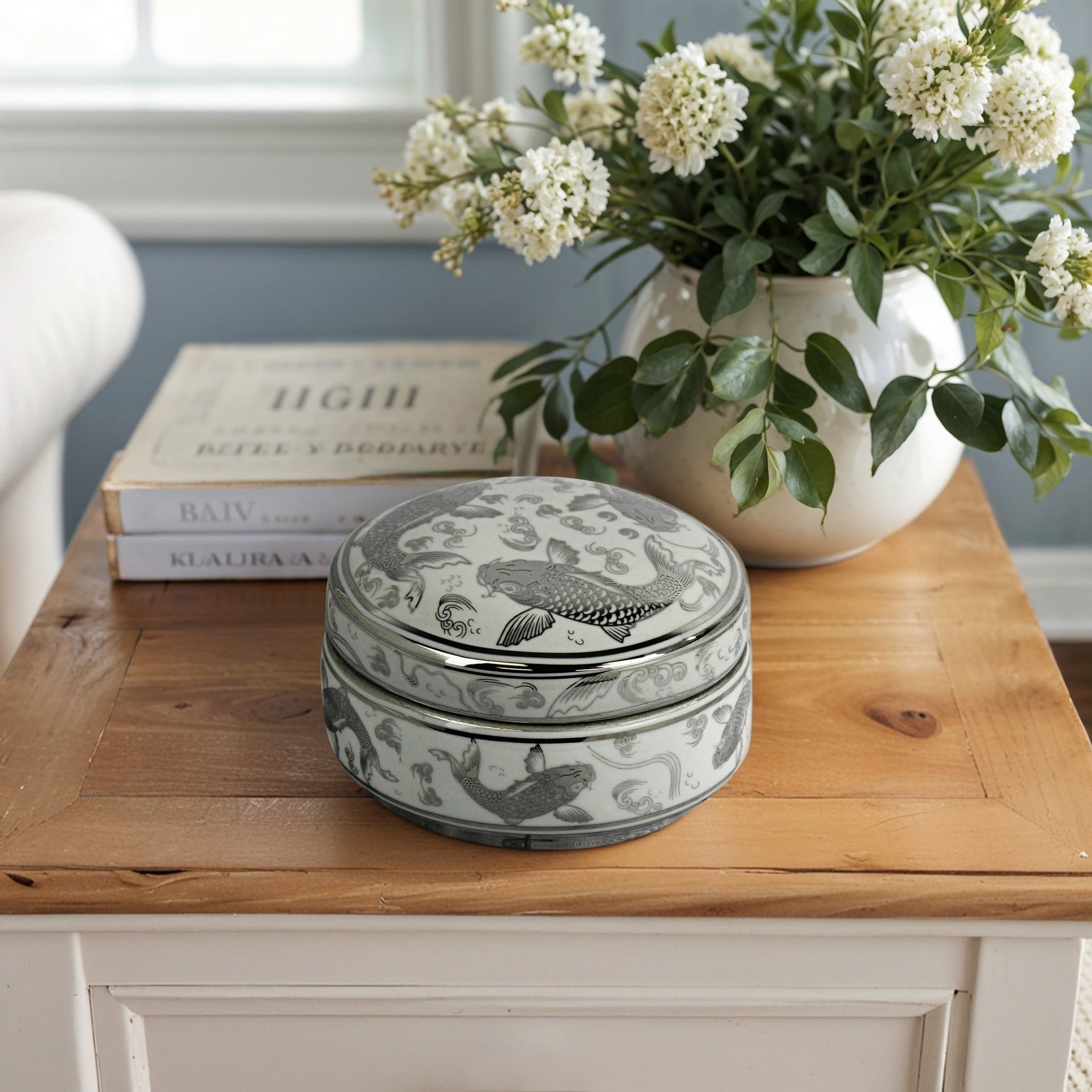 CERAMIC KOI COVERED BOX