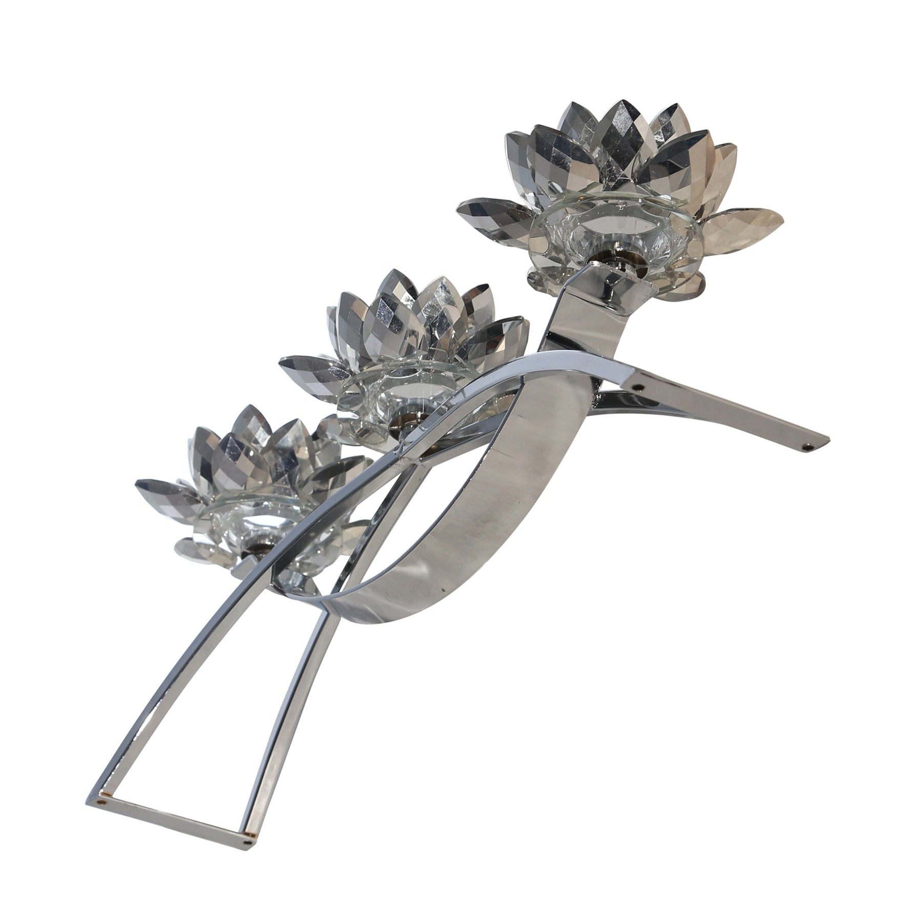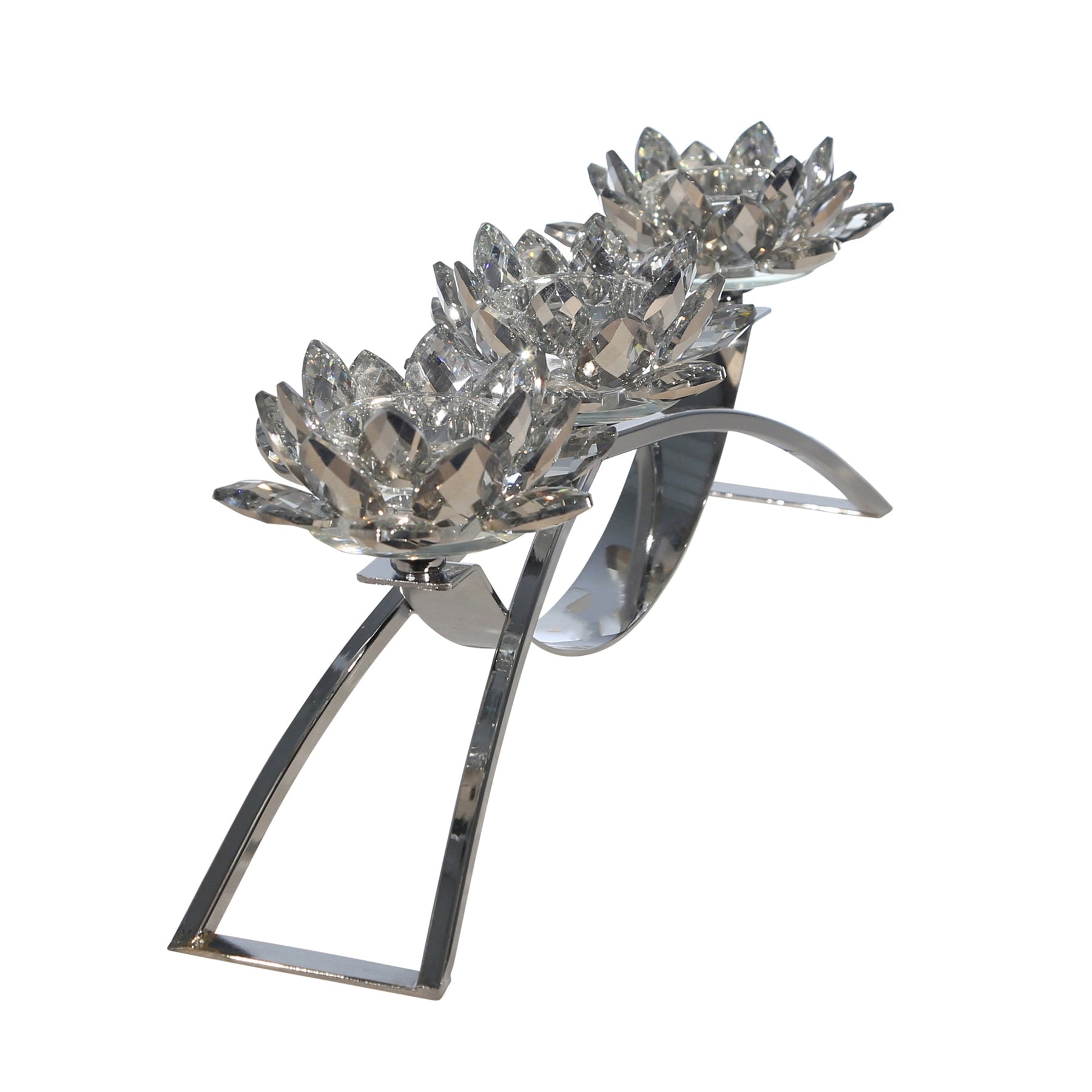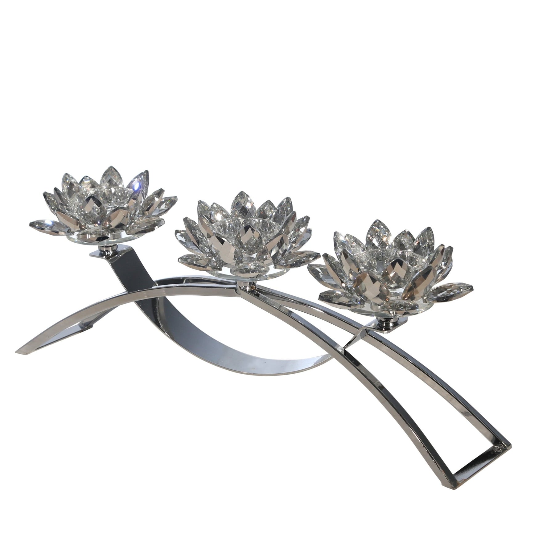 METAL/GLASS 16" 3 LOTUS VOTIVECANDLE HOLDER, SILVE