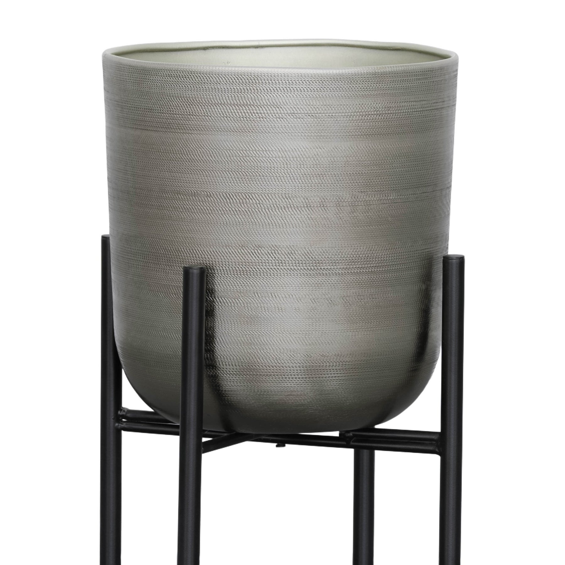 S/3 METAL PLANTERS ON STAND 40/30/20"H, SILVER