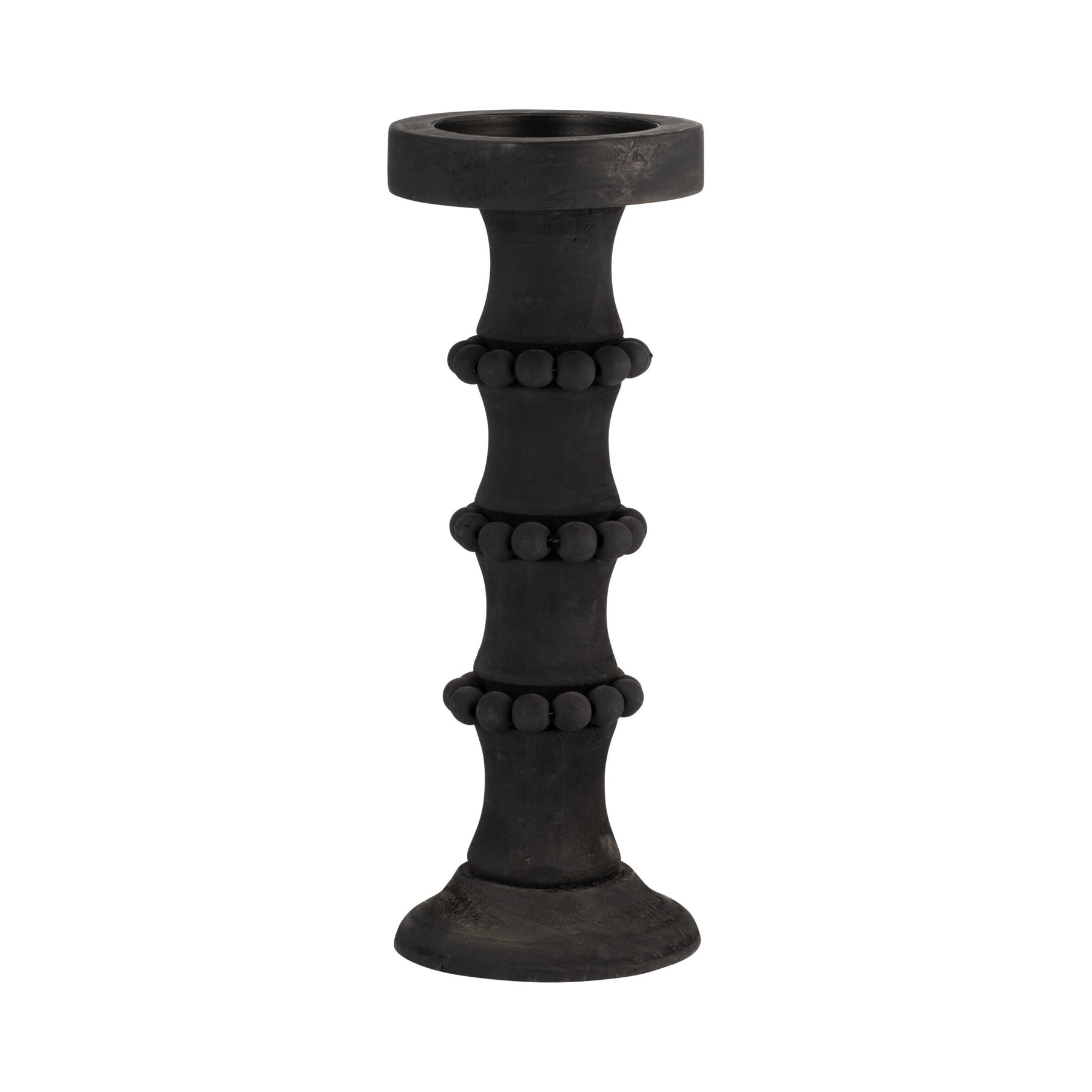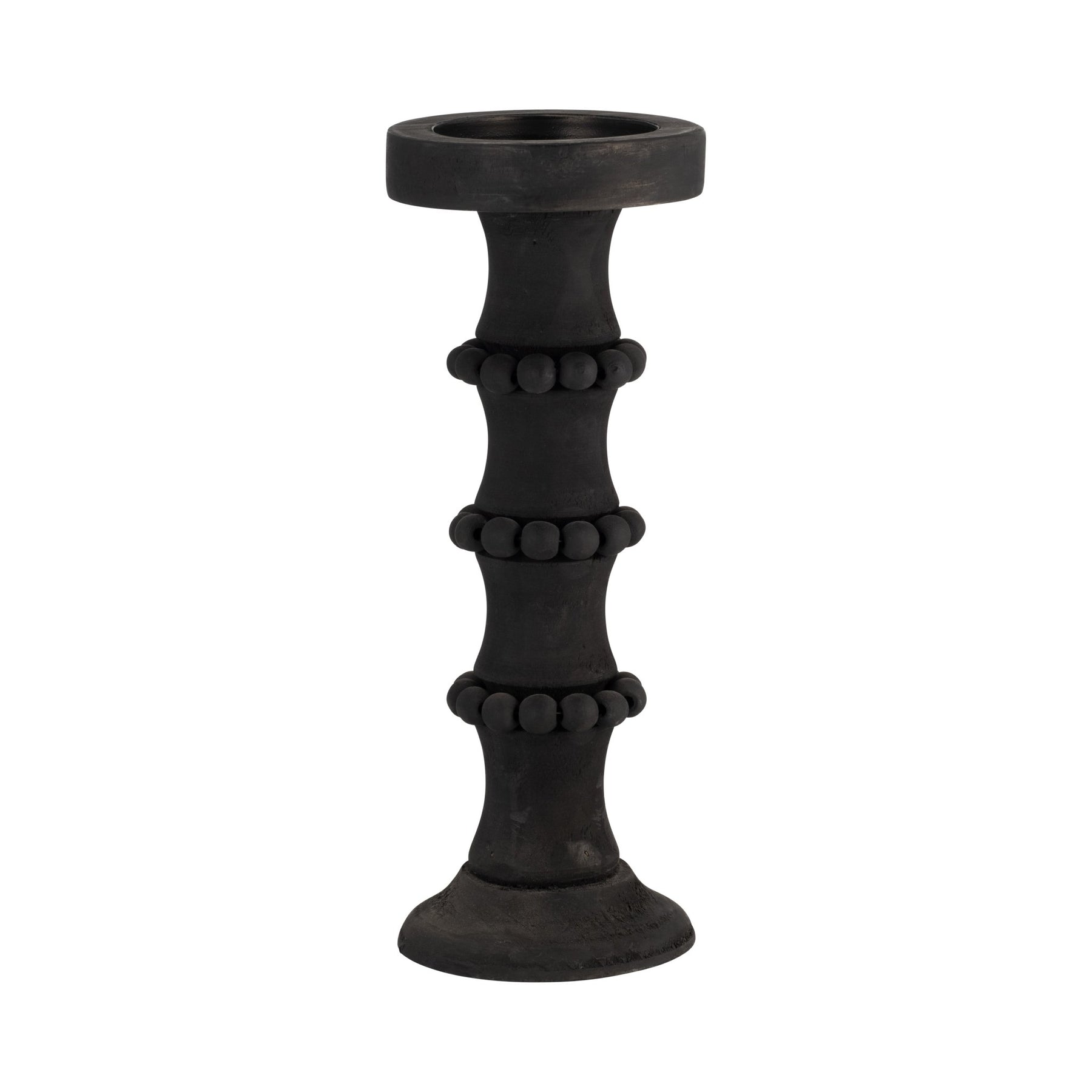 WOOD, 13" ANTIQUE STYLE CANDLE HOLDER, BLACK