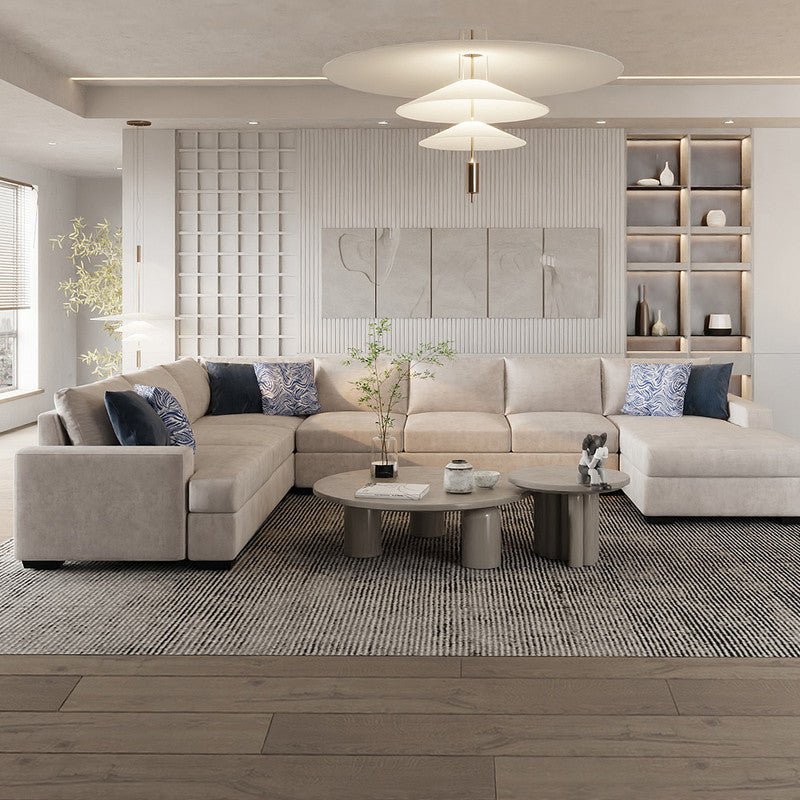 Modern Linen And Swedish Wood U-Shape Sofa - Beige By Alhome - 110113298