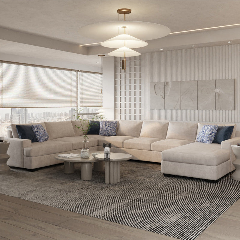 Modern Linen And Swedish Wood U-Shape Sofa - Beige By Alhome - 110113298-a