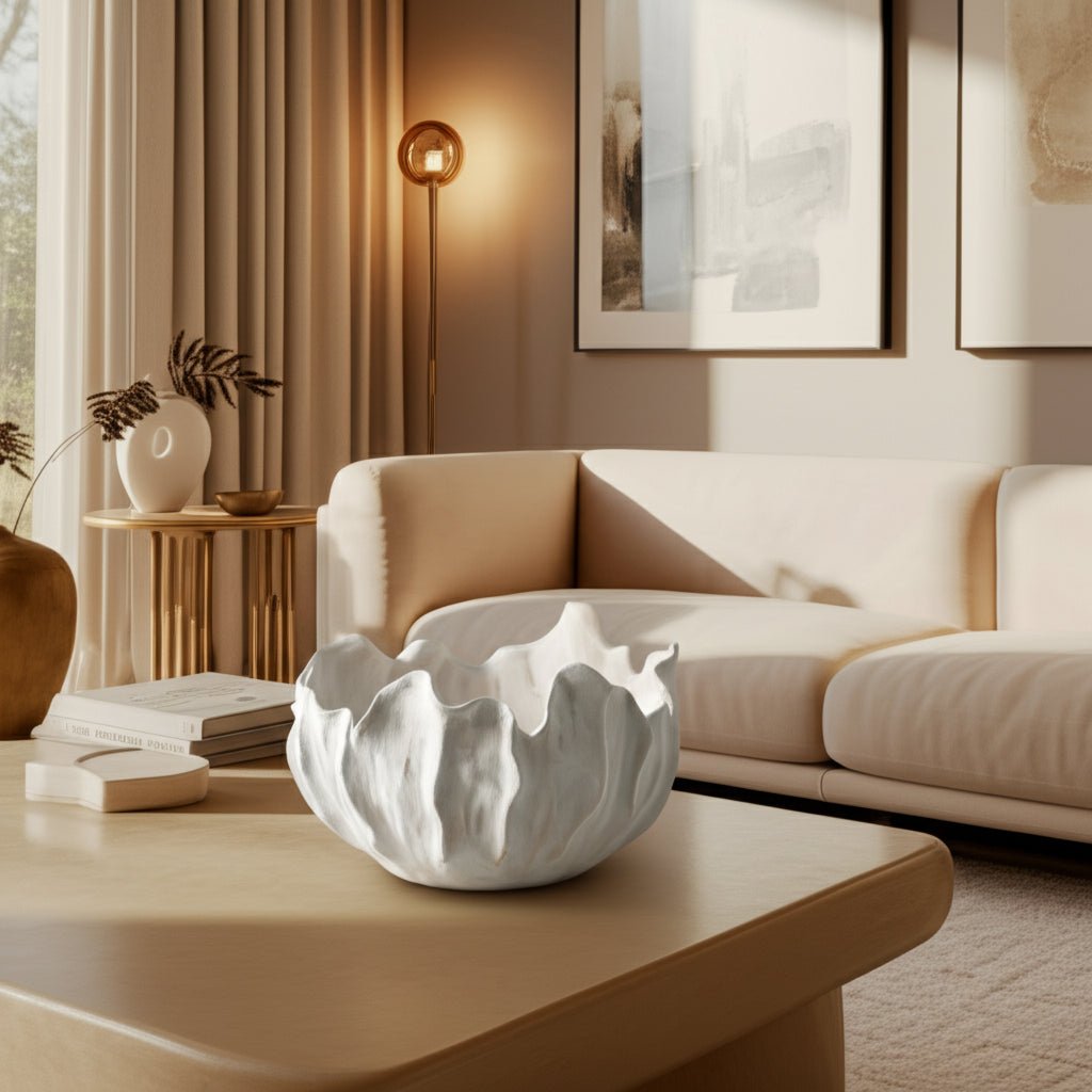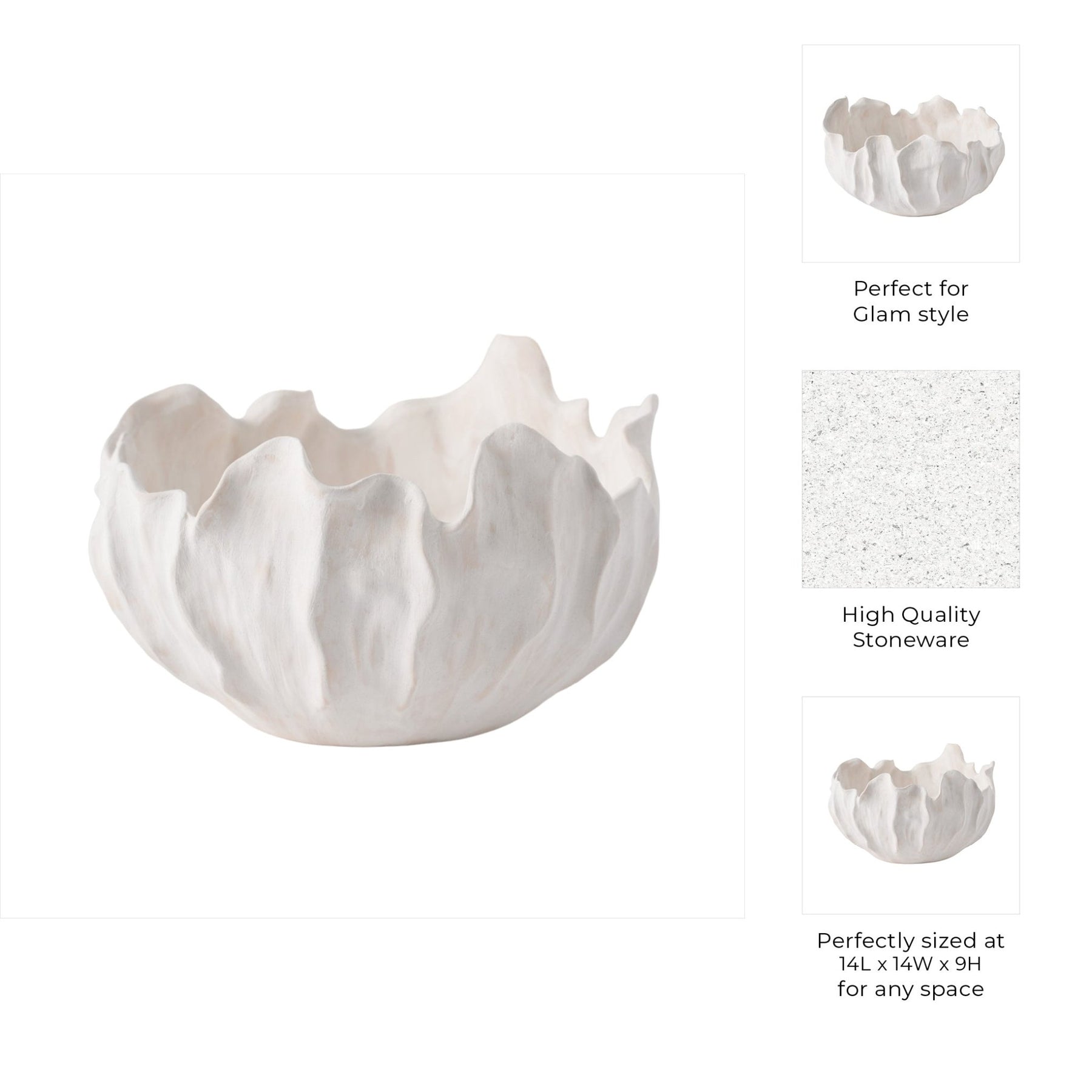 14" SPADENA SHORT PORCELAIN BOWL, IVORY - Al Rugaib Furniture