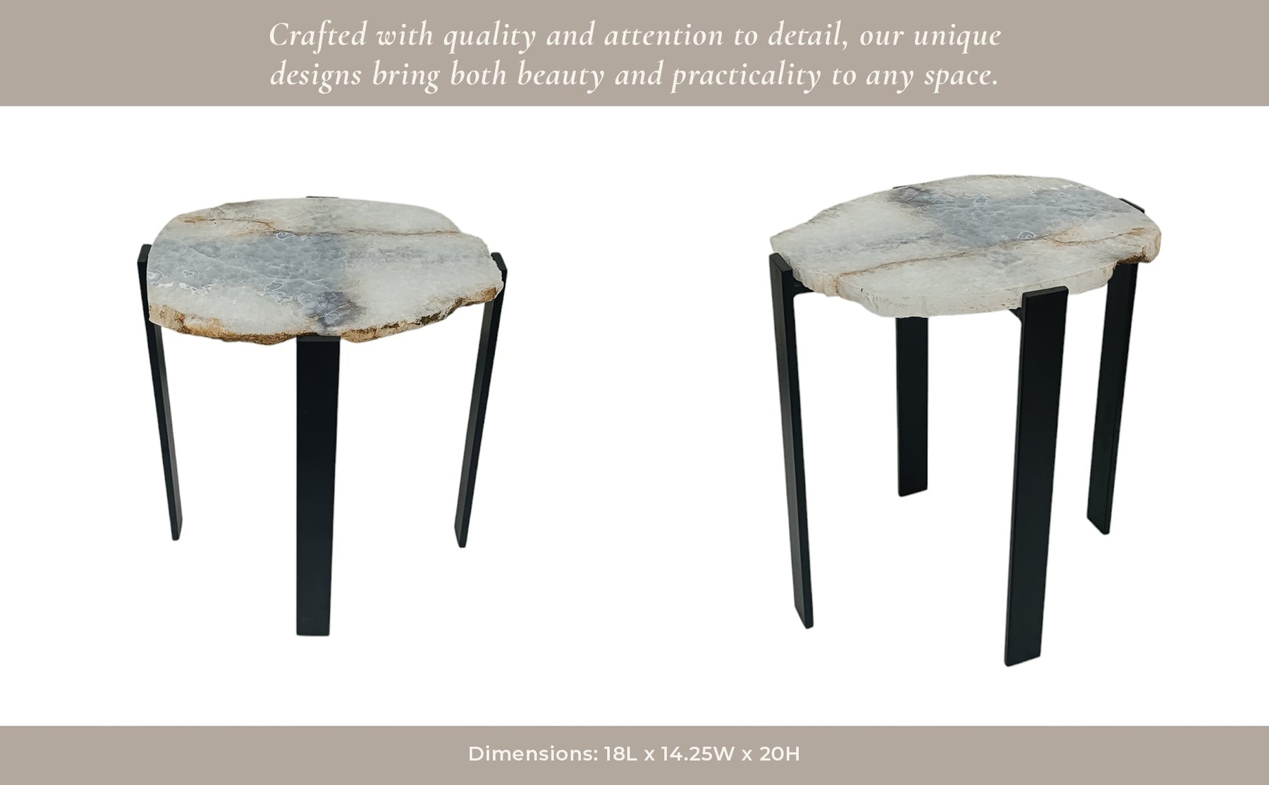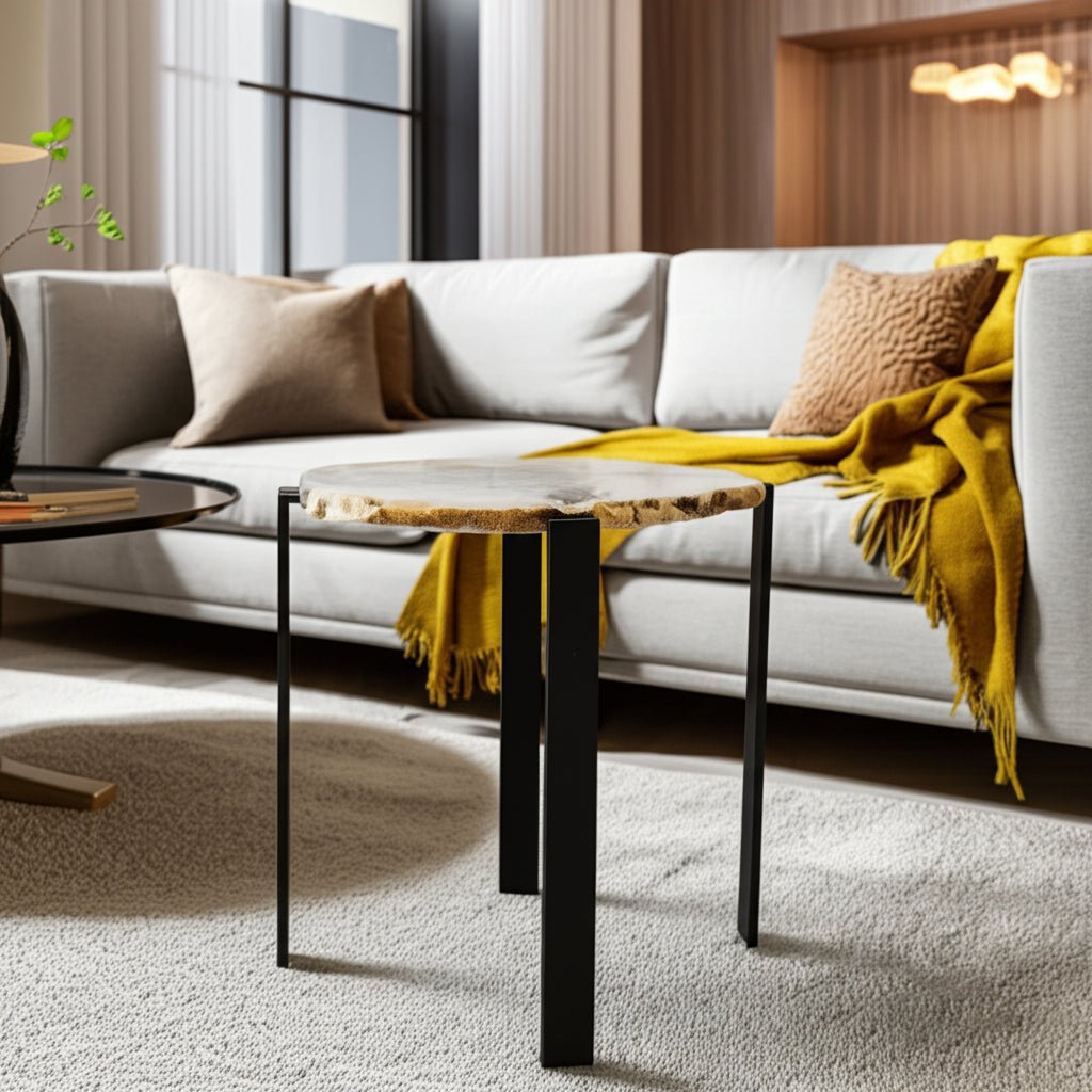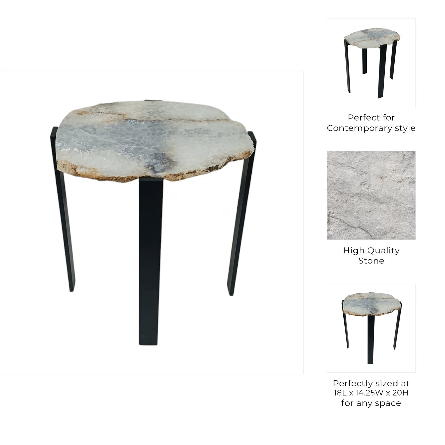 20X18" RAW EDGE AGATE ACCENT TABLE, WHITE/BLACK - Al Rugaib Furniture