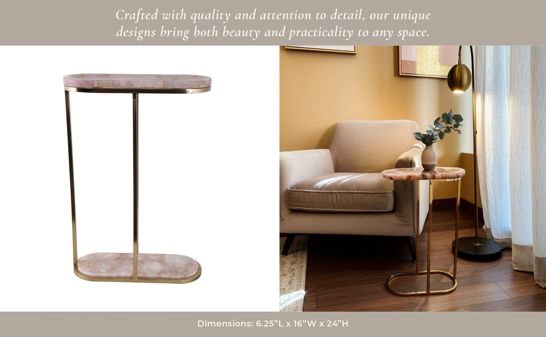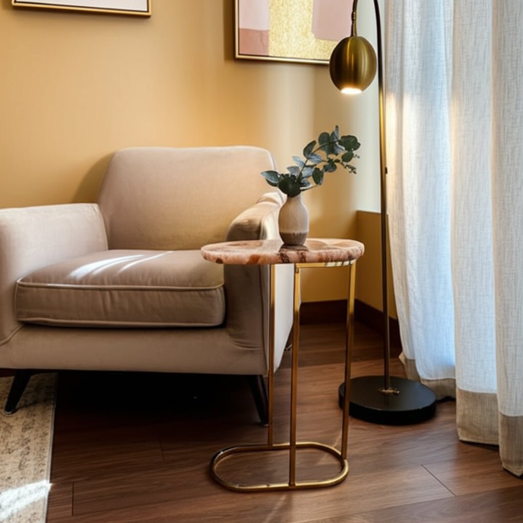 24" Eagar Pink Quartz Accent Table - Al Rugaib Furniture