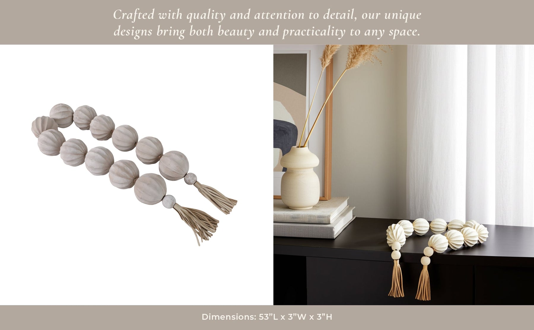 53"newbrdge Taupe Eco-mix Garlnd W/leather Tassels