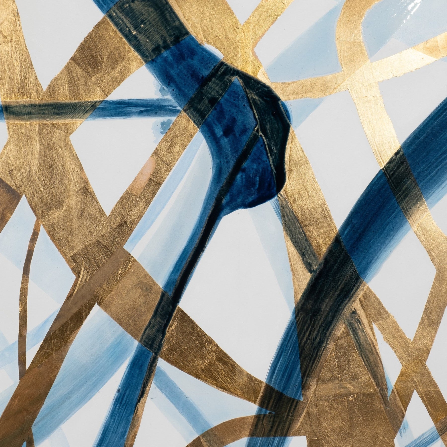 82X52, ABSTRACT HAND PAINTED OIL PAINTING, BLUE