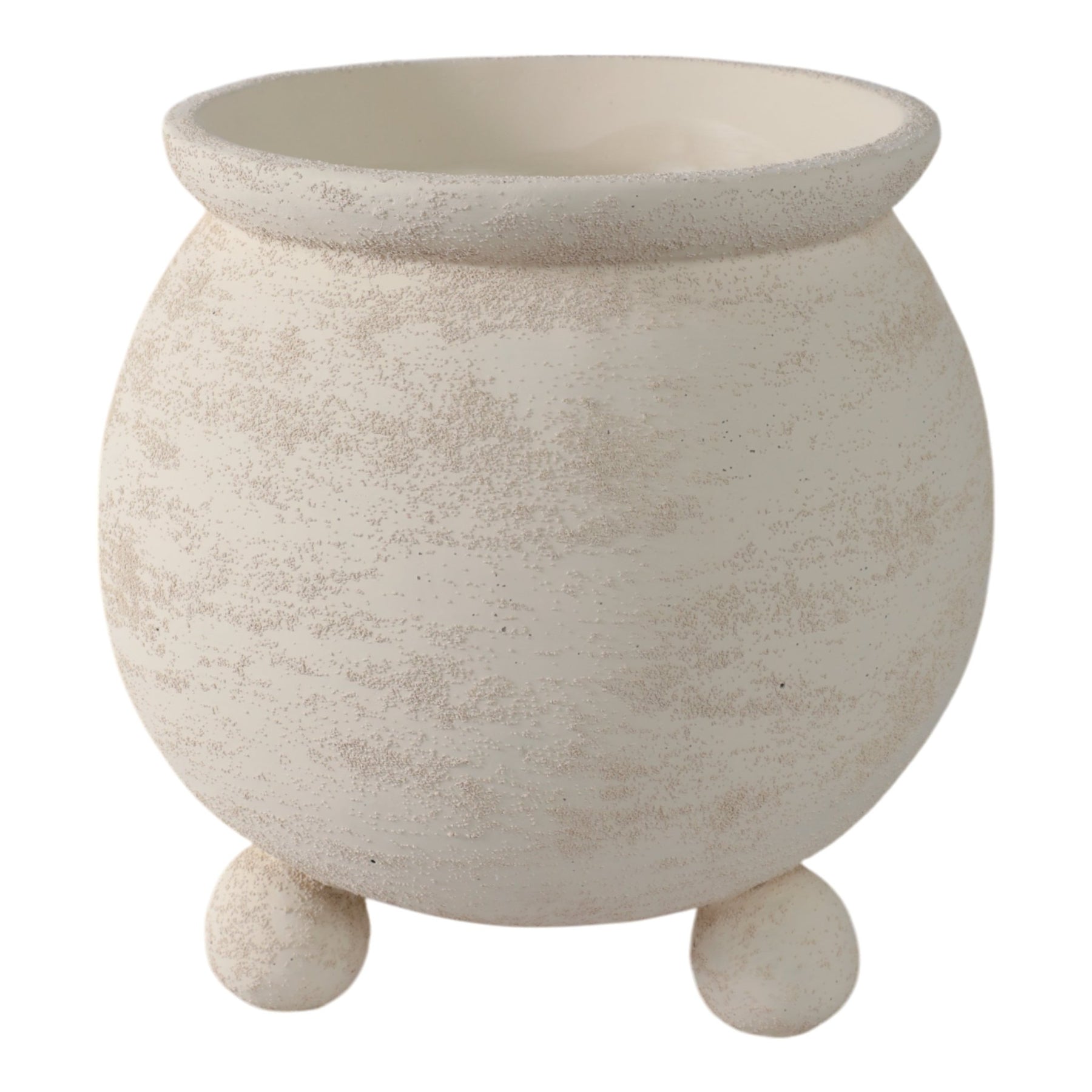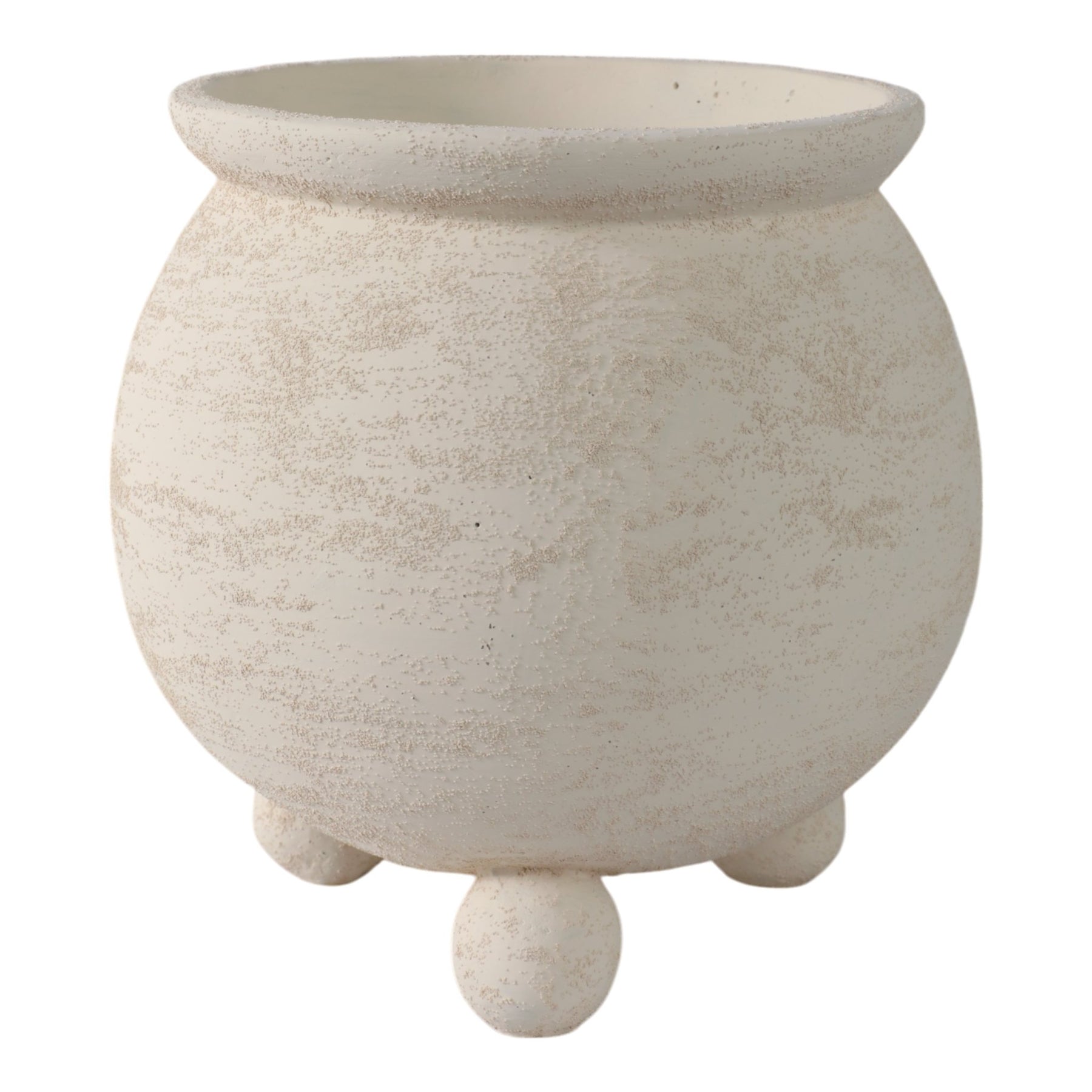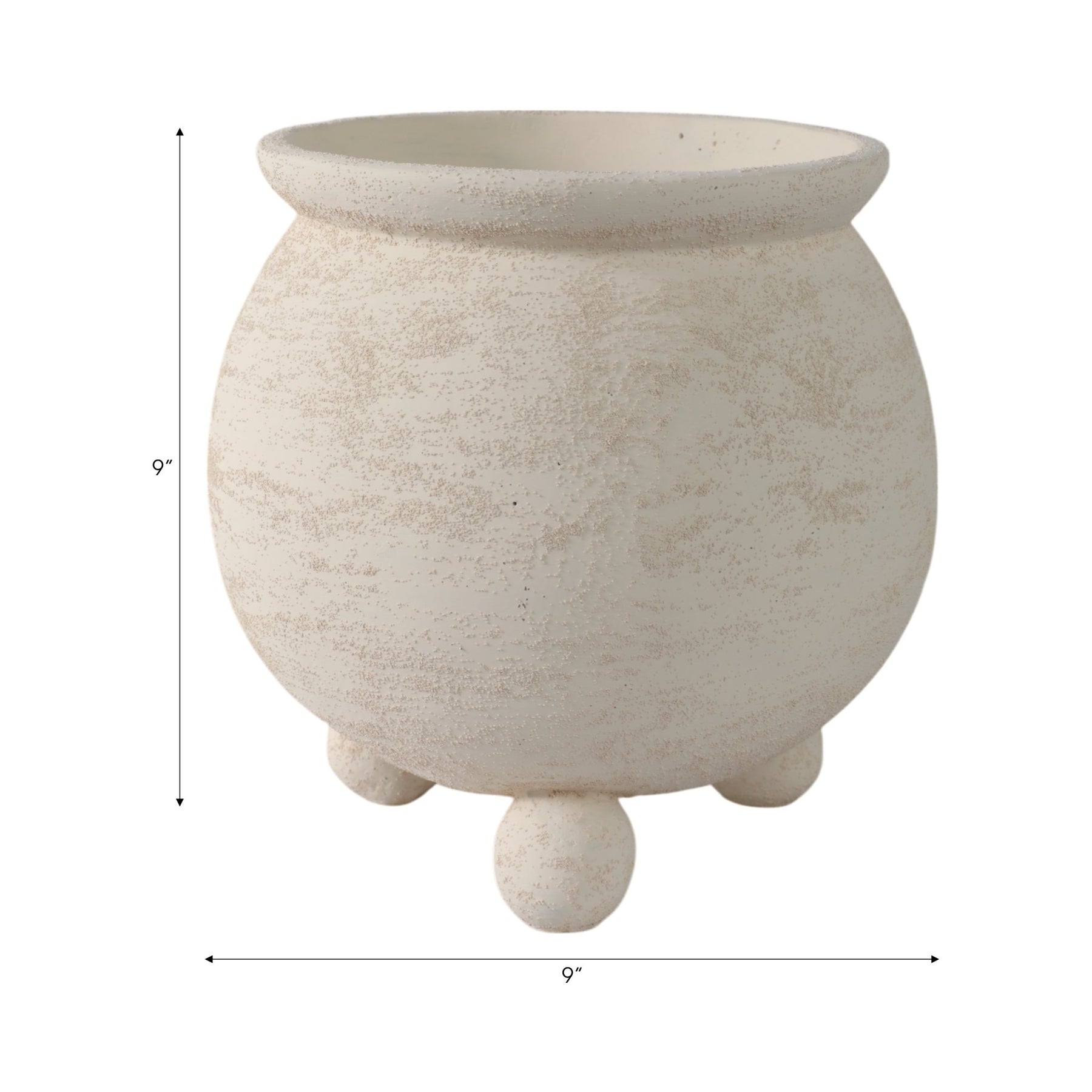 9x9" Textured Rounded Planter On Ball Feet, Ivory