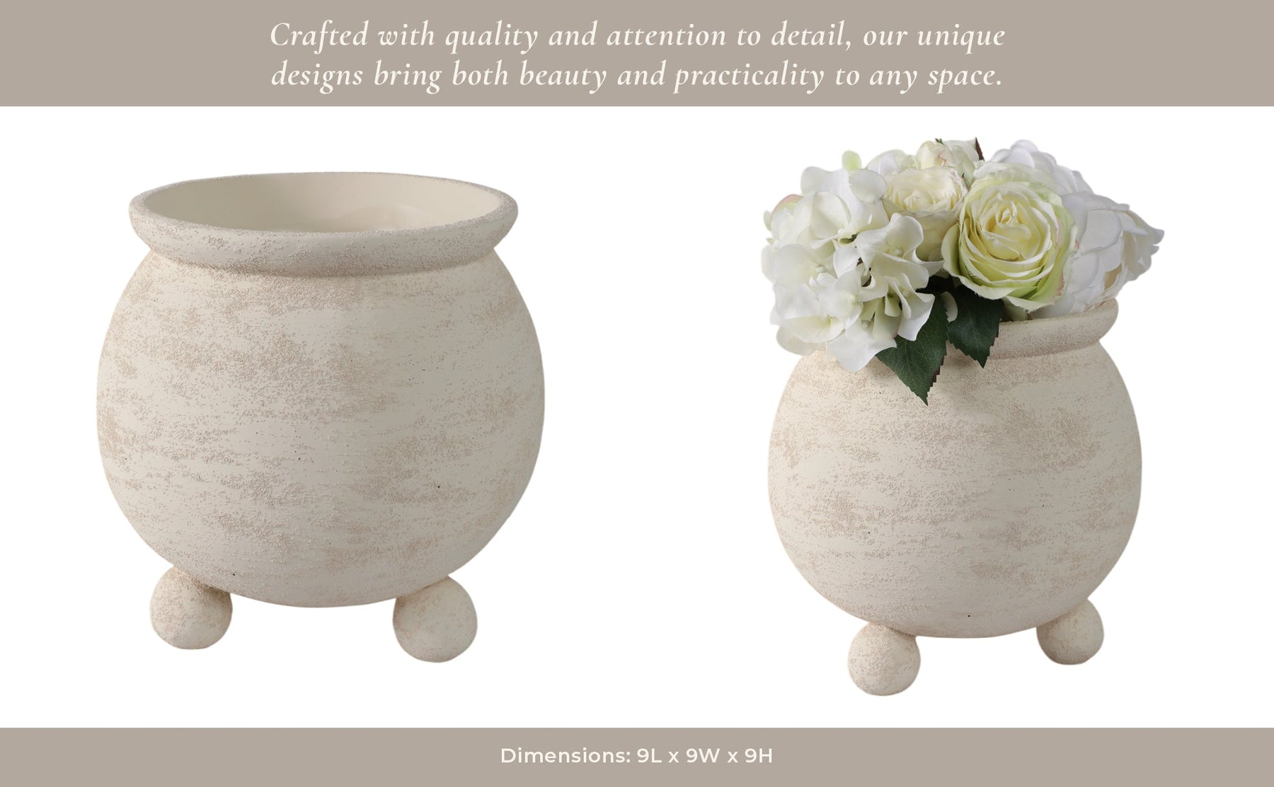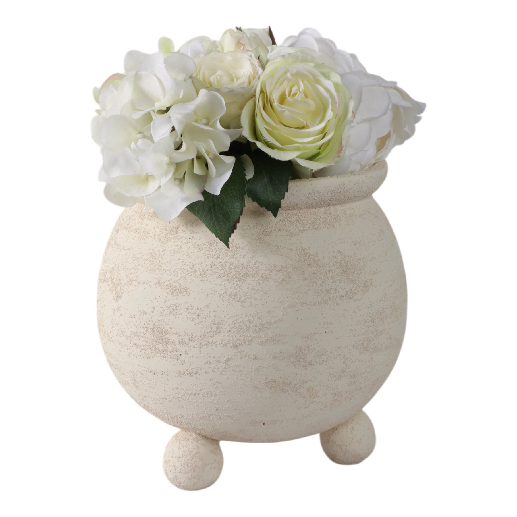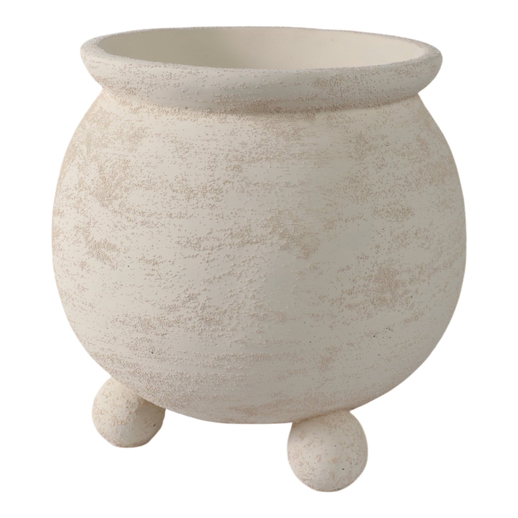 9x9" Textured Rounded Planter On Ball Feet, Ivory