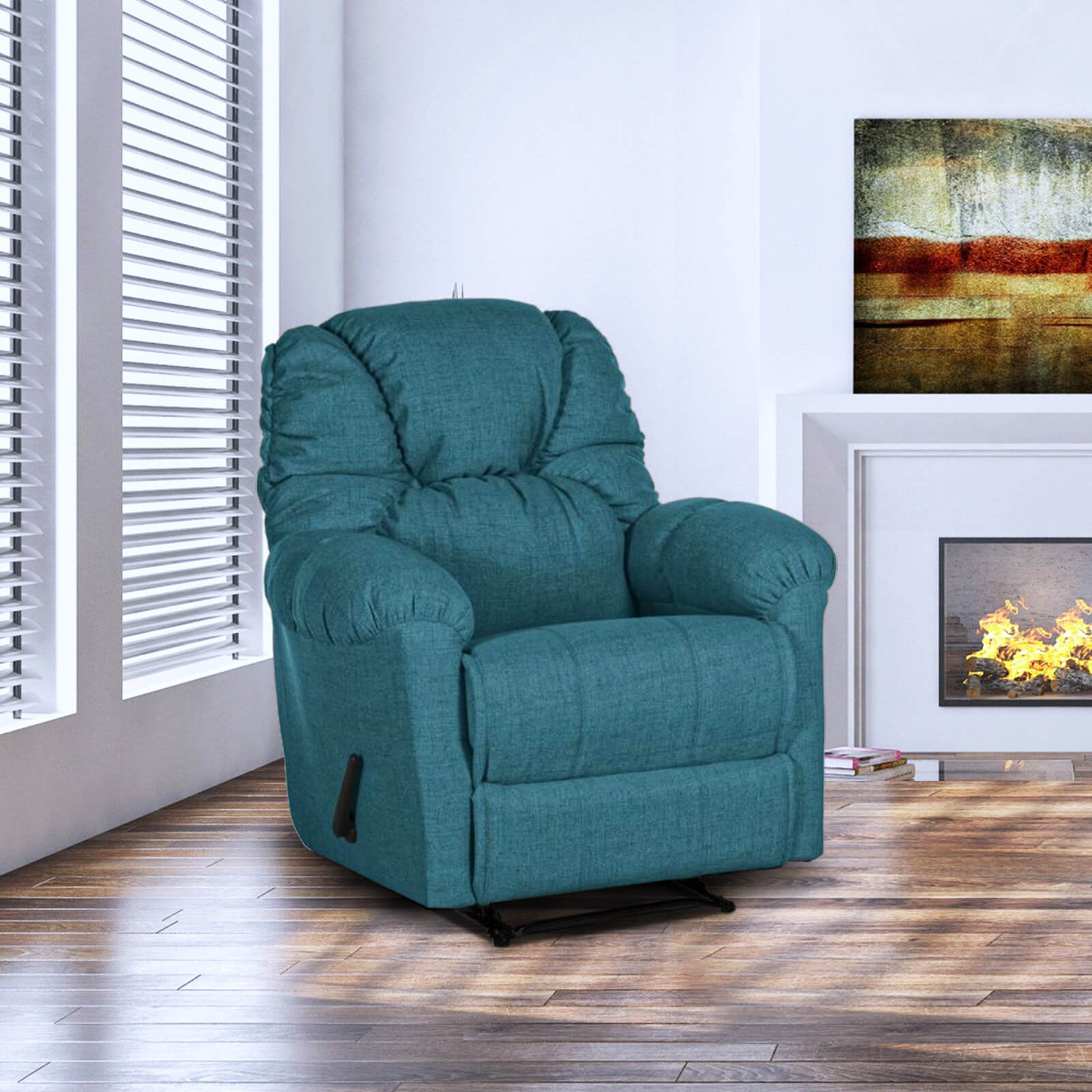 Linen Upholstered Rocking & Rotating Recliner Chair With Bed Mode From American Polo - Turquoise - Al Rugaib Furniture