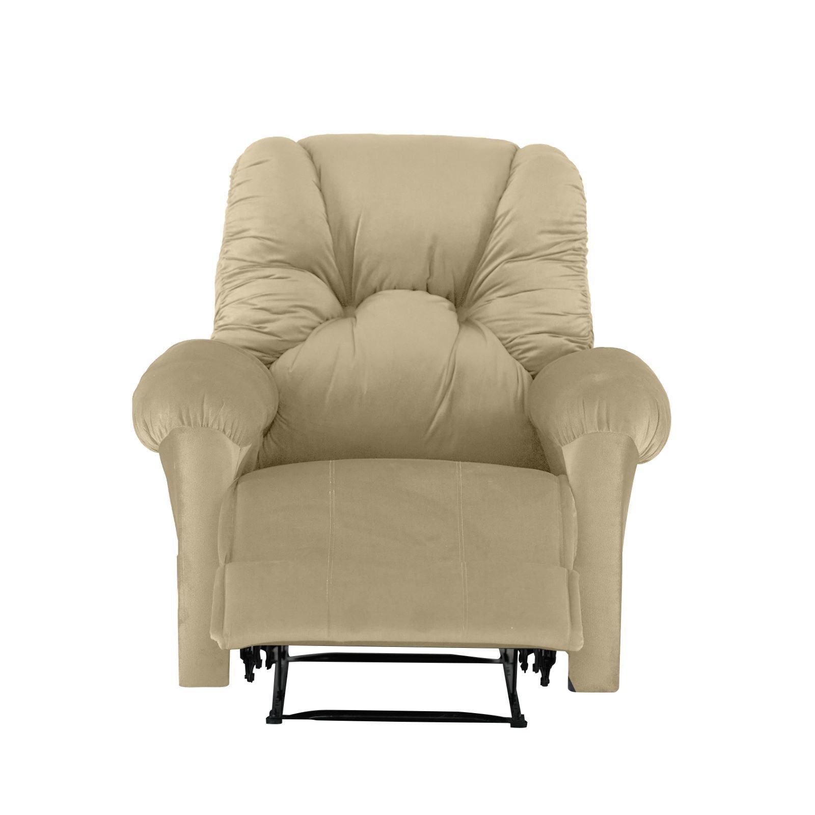 Velvet Upholstered Rocking Recliner Chair With Bed Mode from American Polo - Light Beige