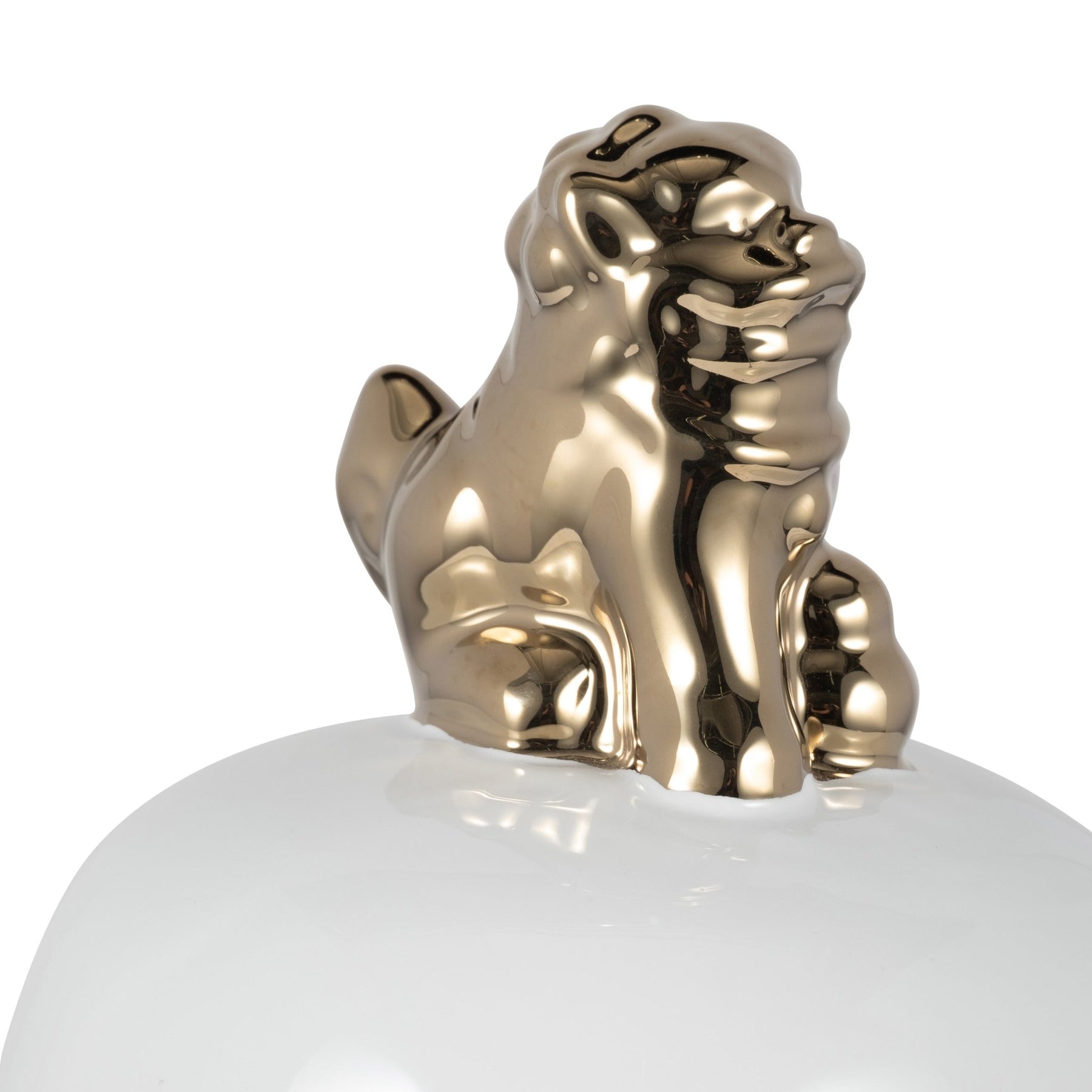 CER, 18" LION HEAD TEMPLE JAR, WHITE/GOLD - Al Rugaib Furniture