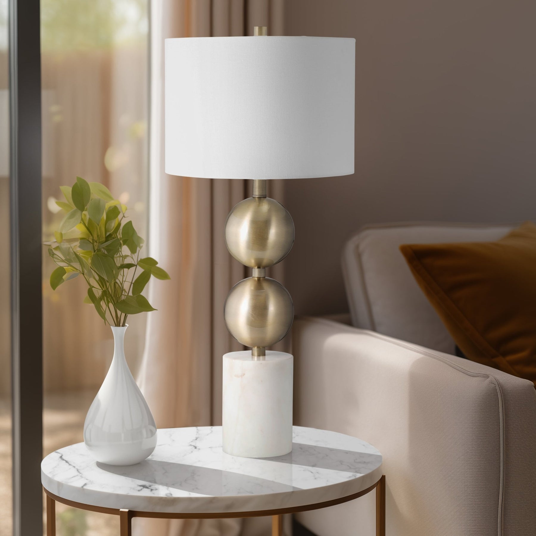 Marble, 30" Stacking Orbs Table Lamp, Gold/white